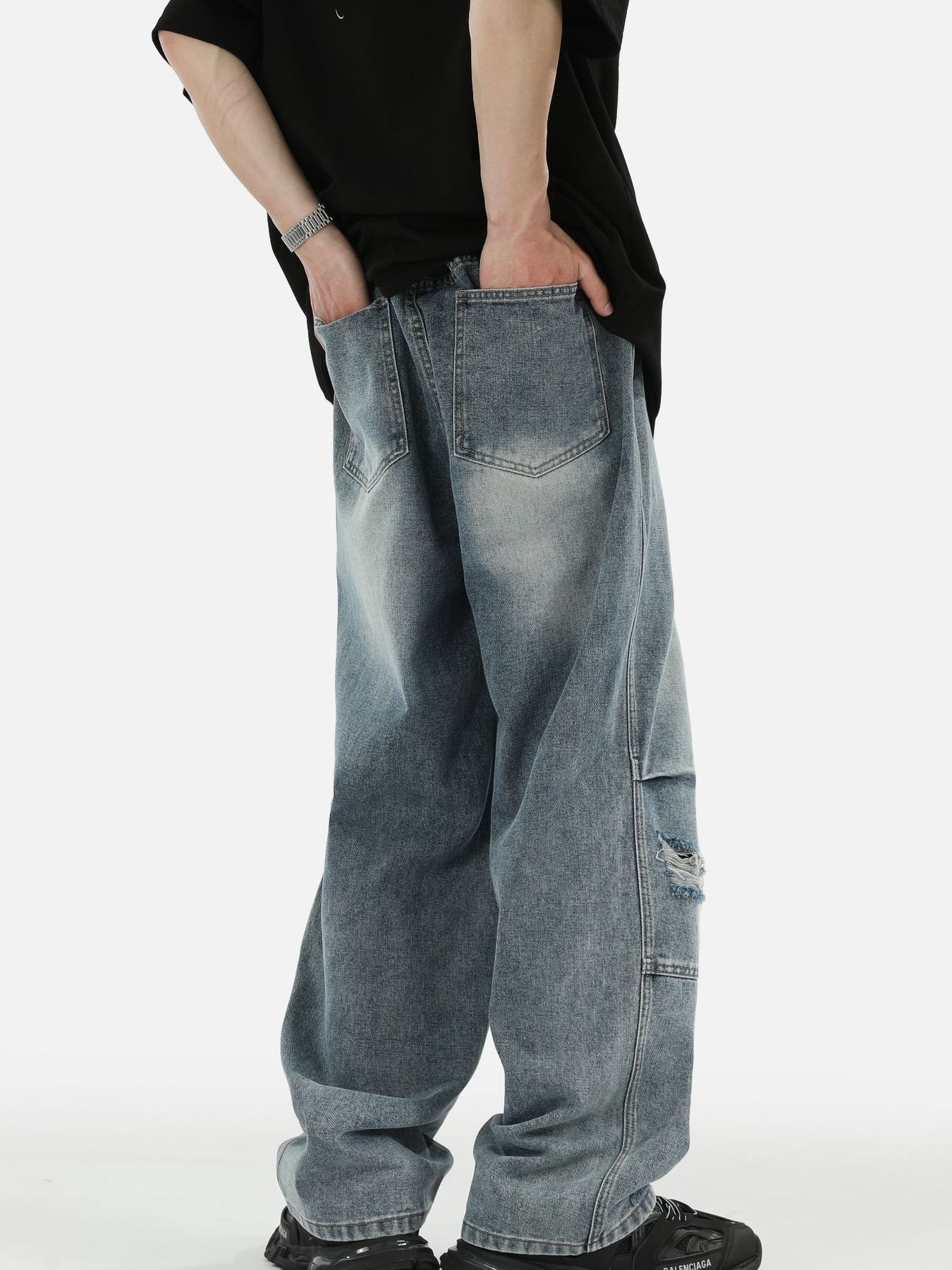 Men's Full Size Distressed Wide-Leg Jeans Plus Size