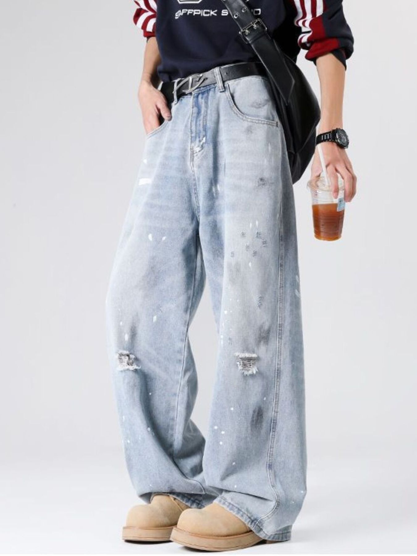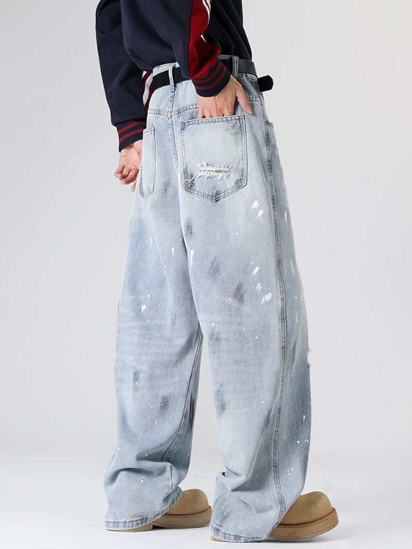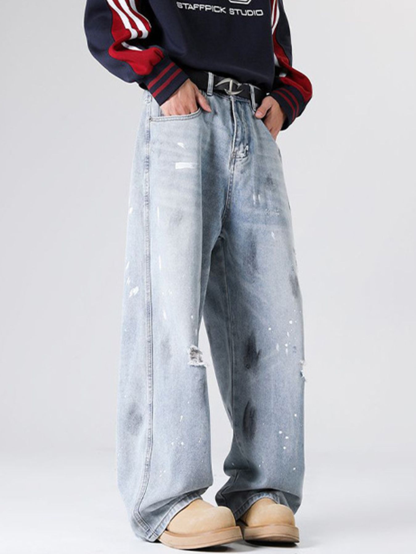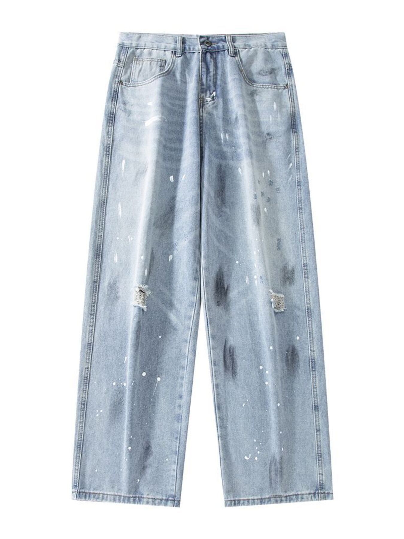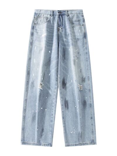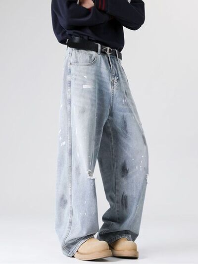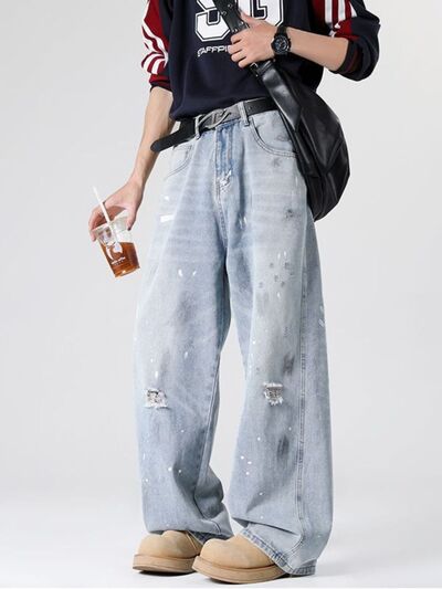 Men's Full Size Distressed Wide Leg Jeans Plus Size