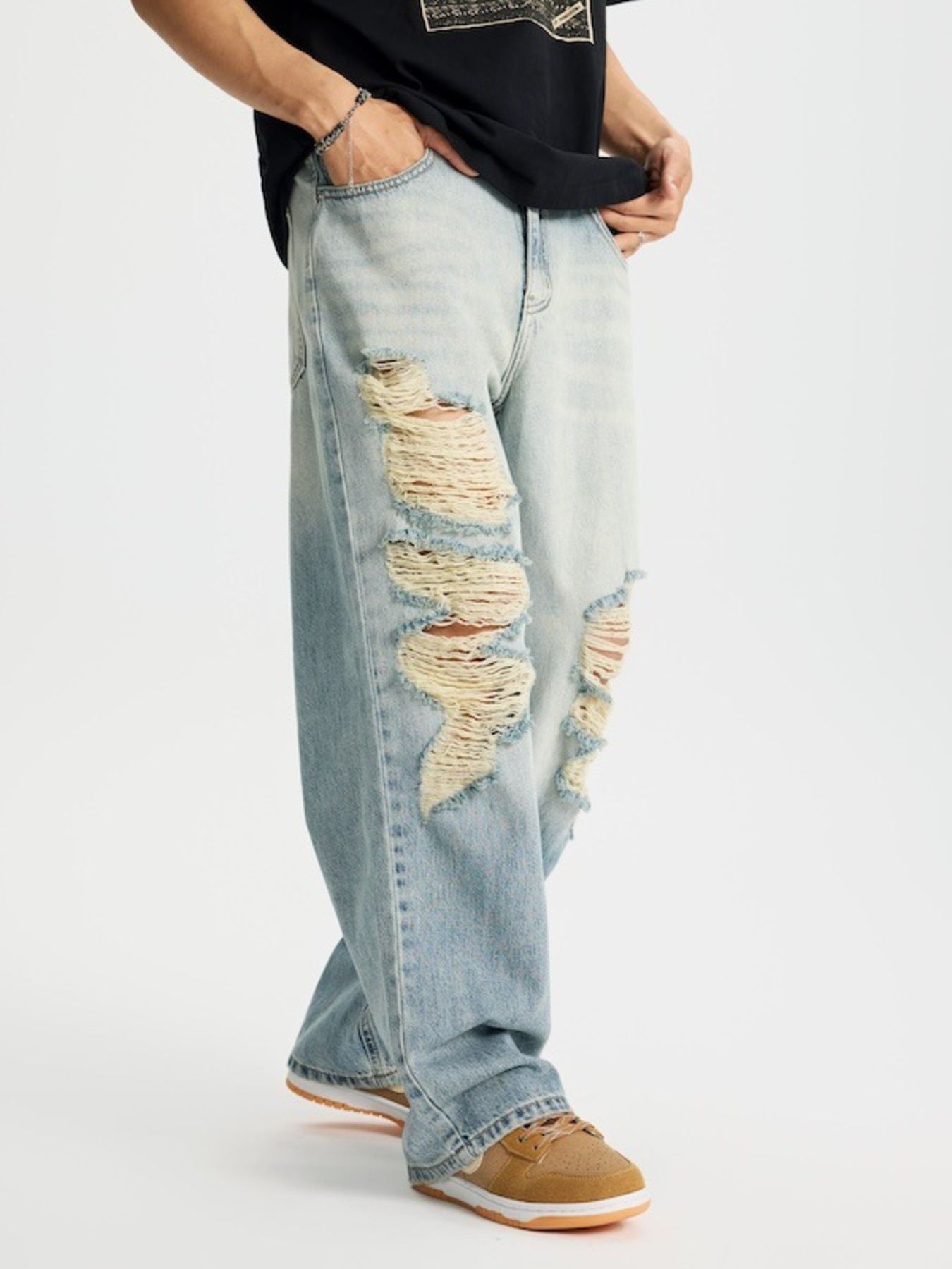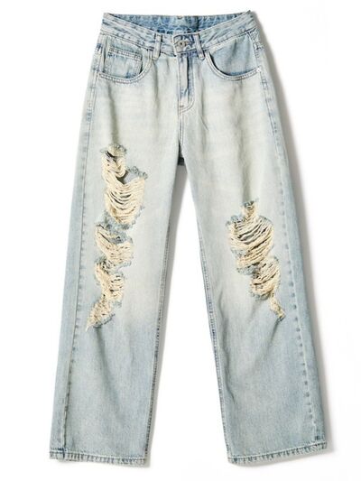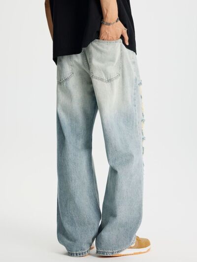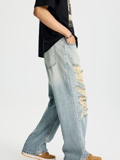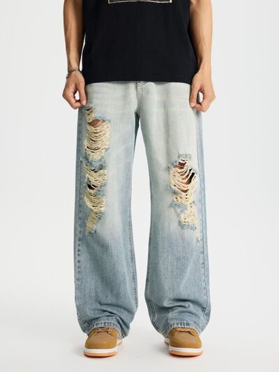 Men's Full Size Distressed Wide Leg Jeans Plus Size