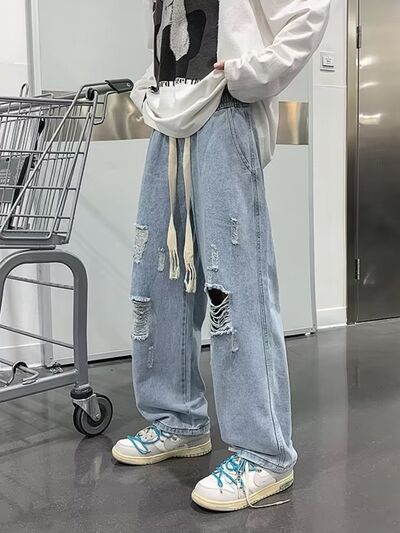 Men's Full Size Distressed Wide Leg Jeans Plus Size