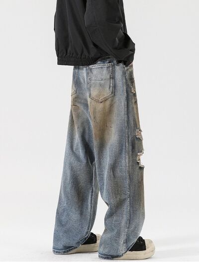 Men's Full Size Distressed Wide Leg Jeans Plus Size