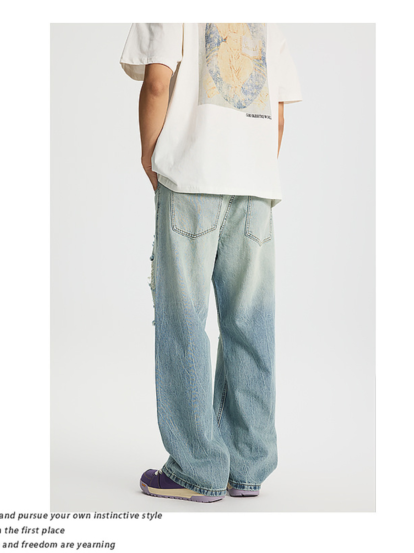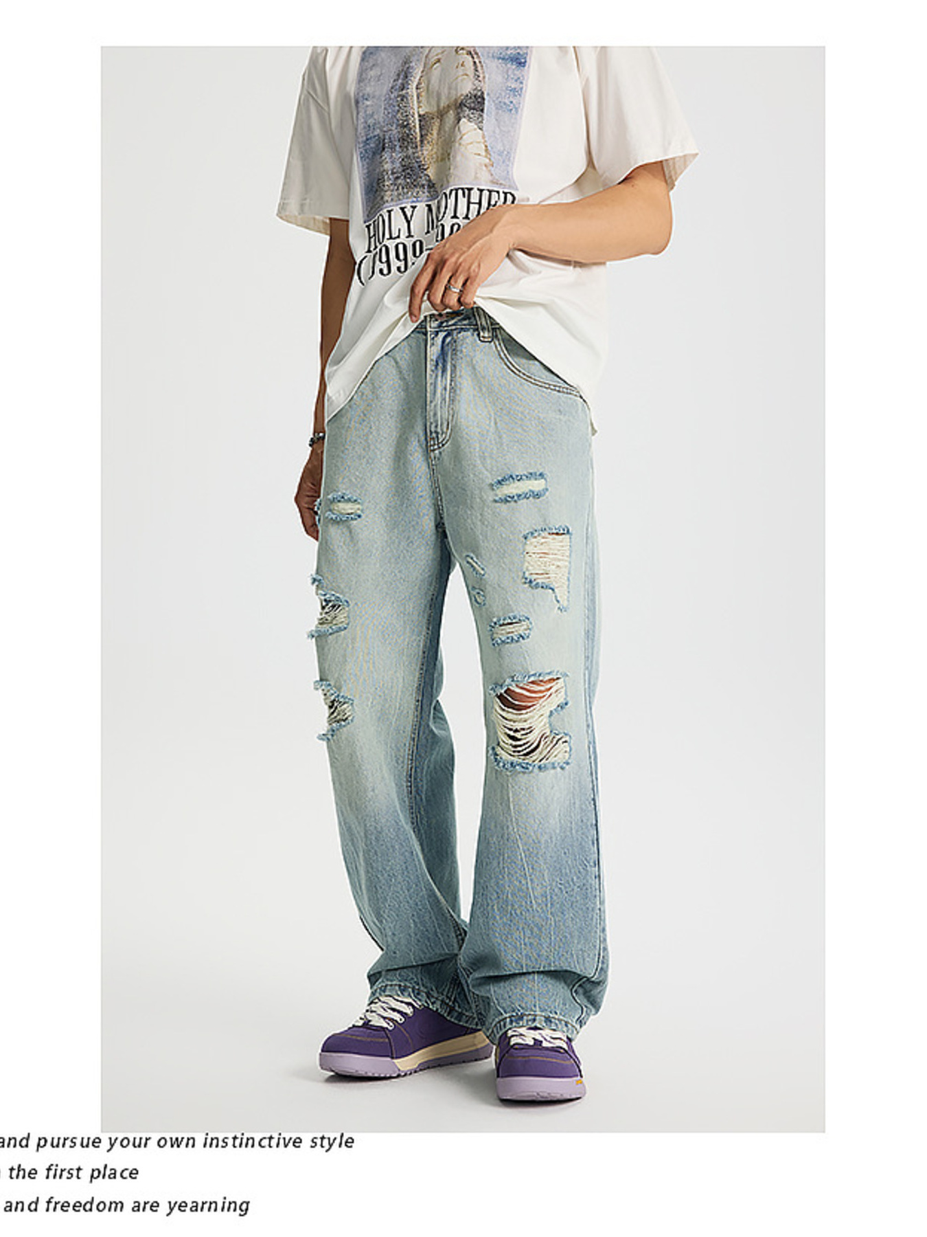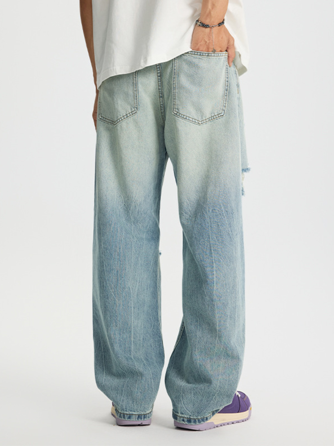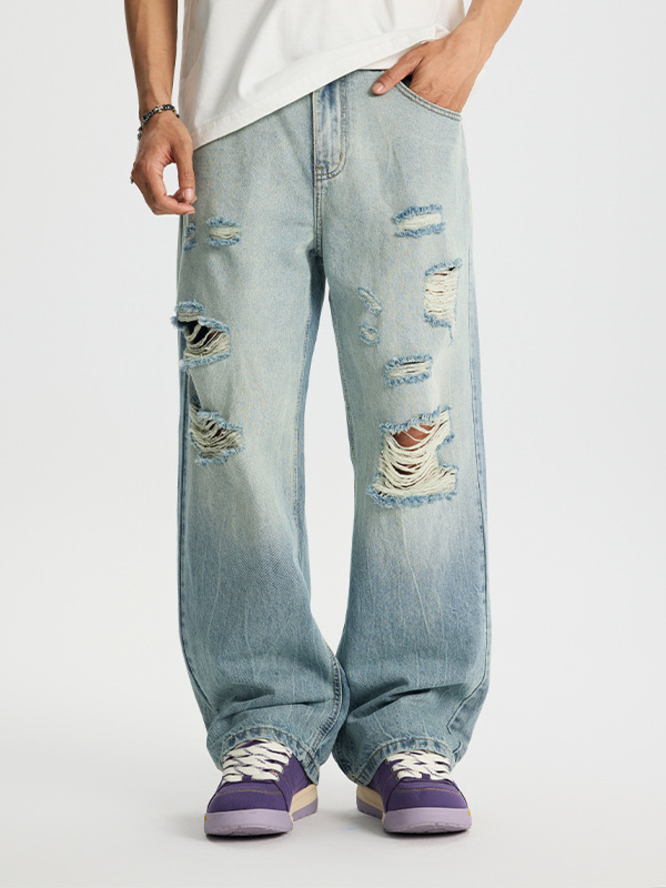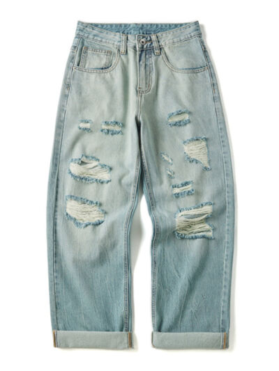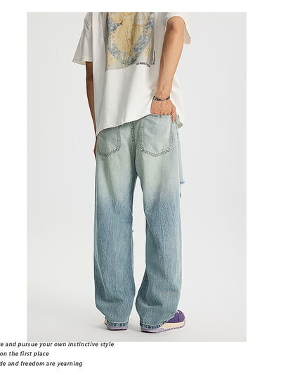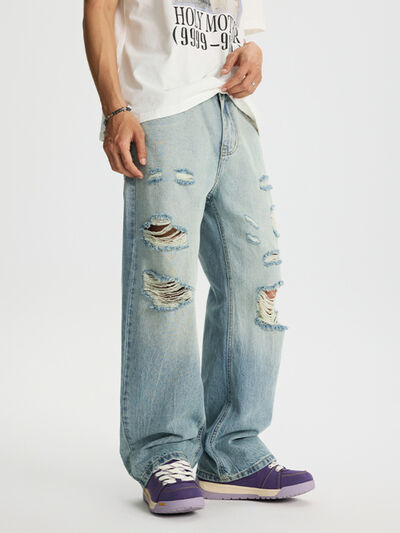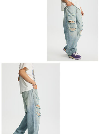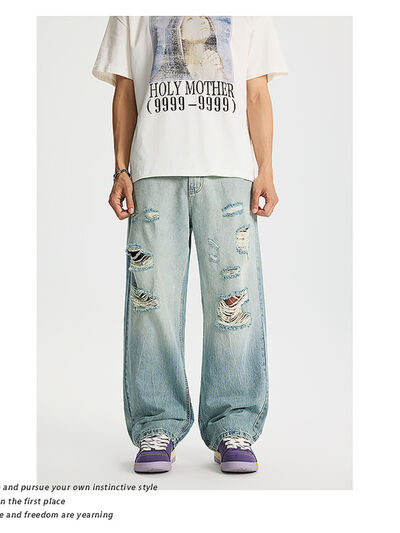 Men's Full Size Distressed Wide Leg Jeans Plus Size