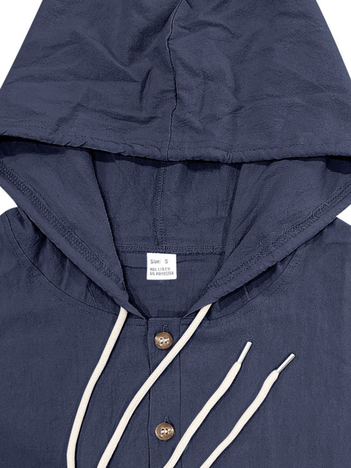 Men's Full Size Drawstring Button Up Hooded Top Plus Size
