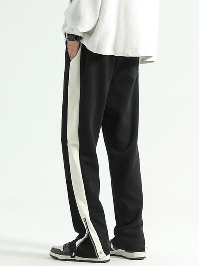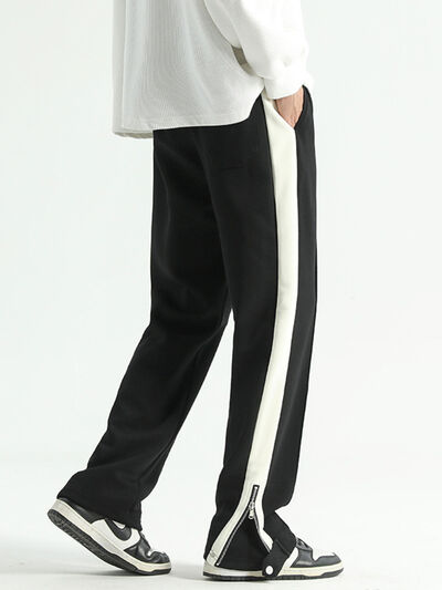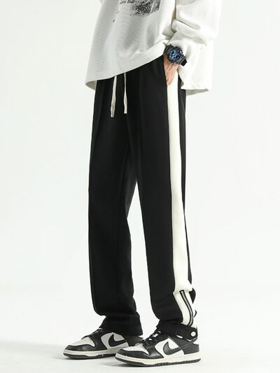 Men's Full Size Drawstring Contrast Wide Leg Pants Plus Size