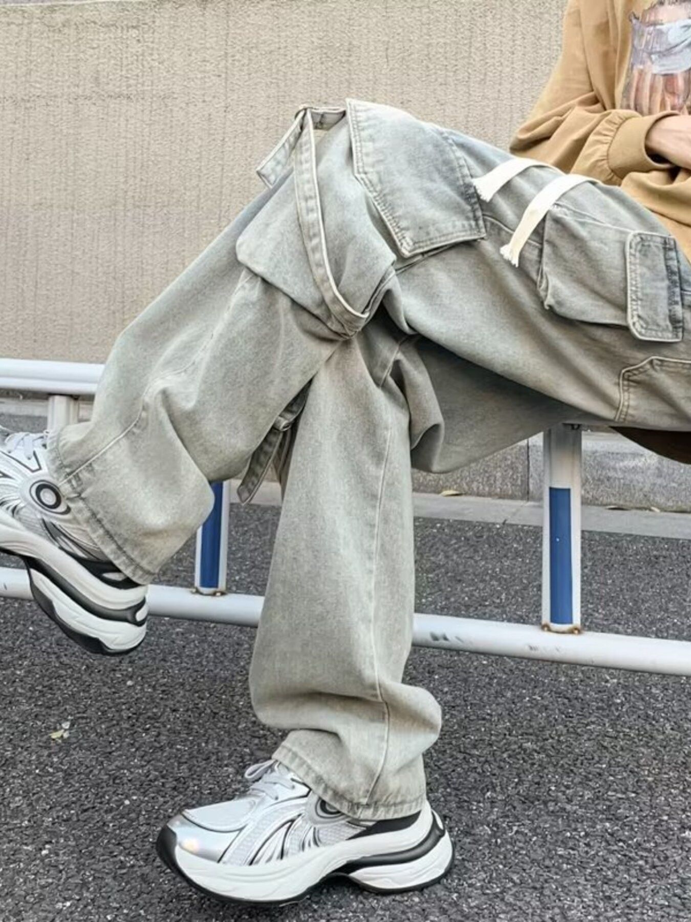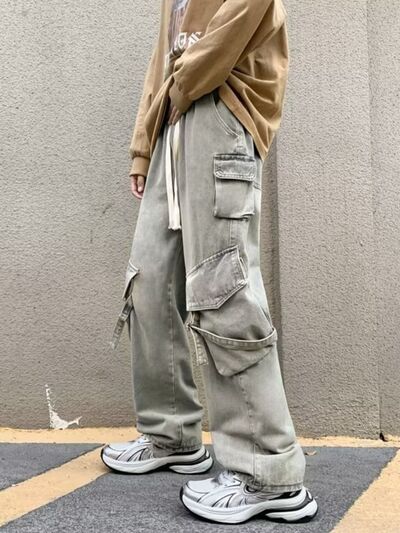 Men's Full Size Drawstring Wide Leg Cargo Jeans Plus Size