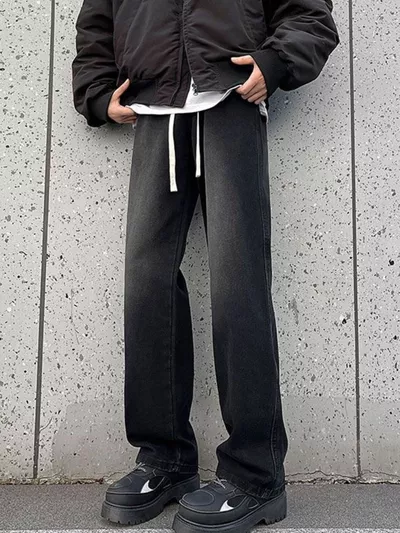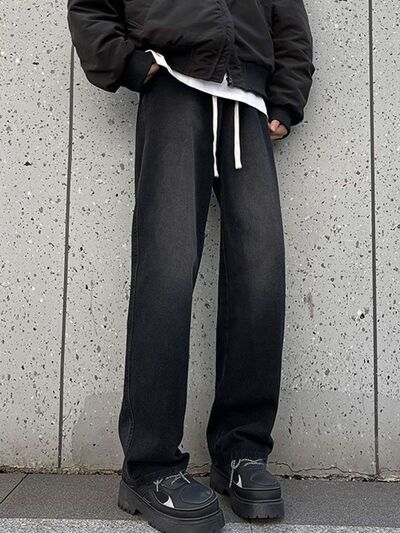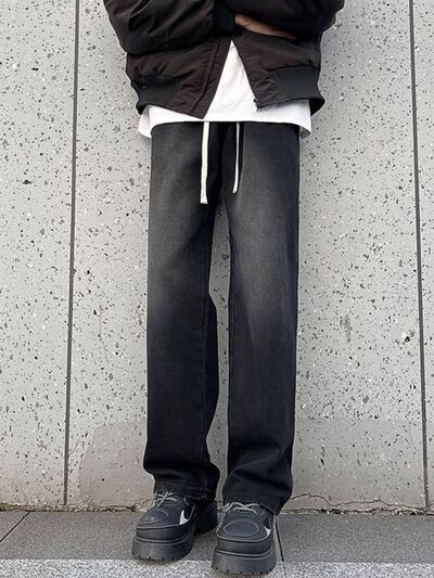 Men's Full Size Drawstring Wide Leg Jeans Plus Size