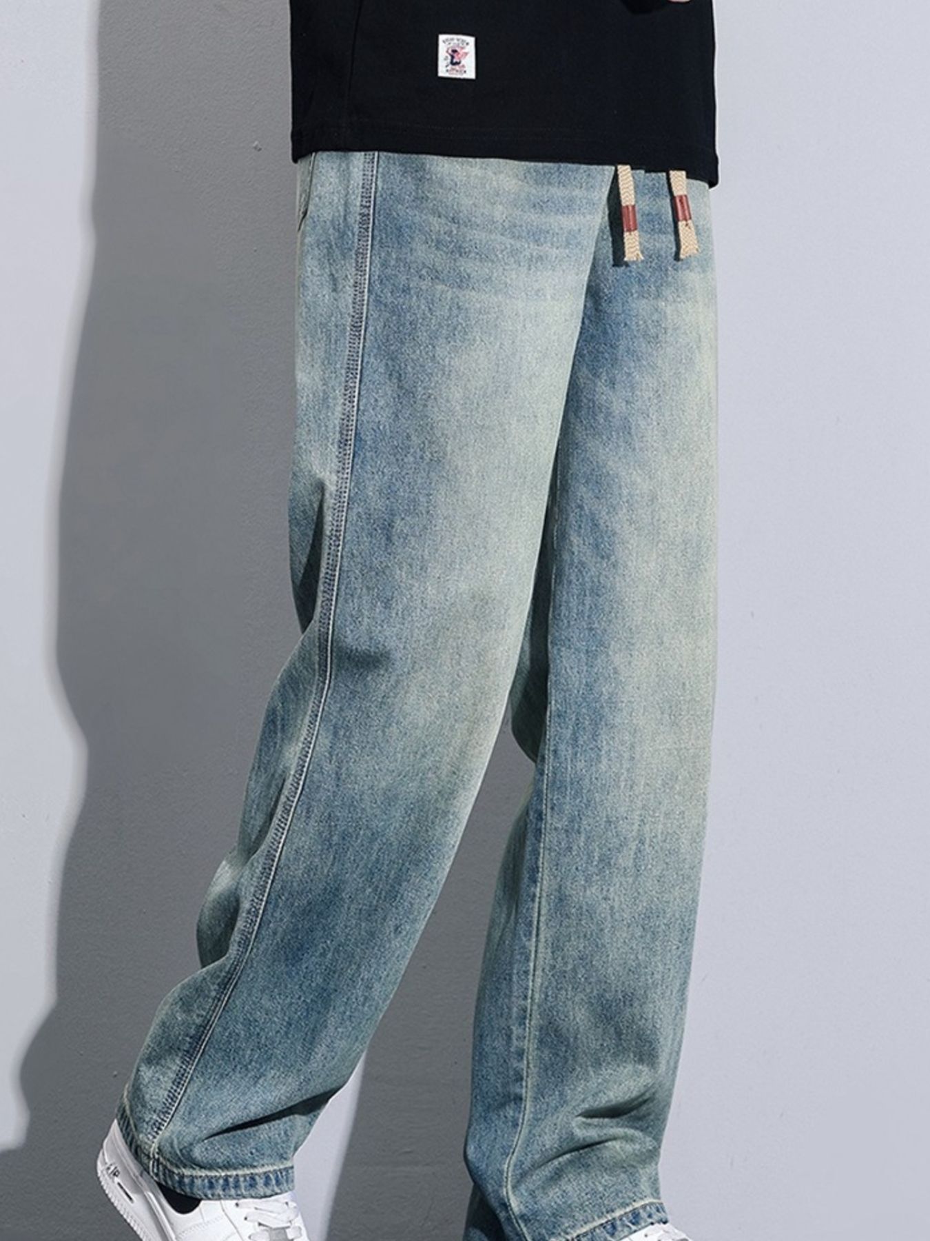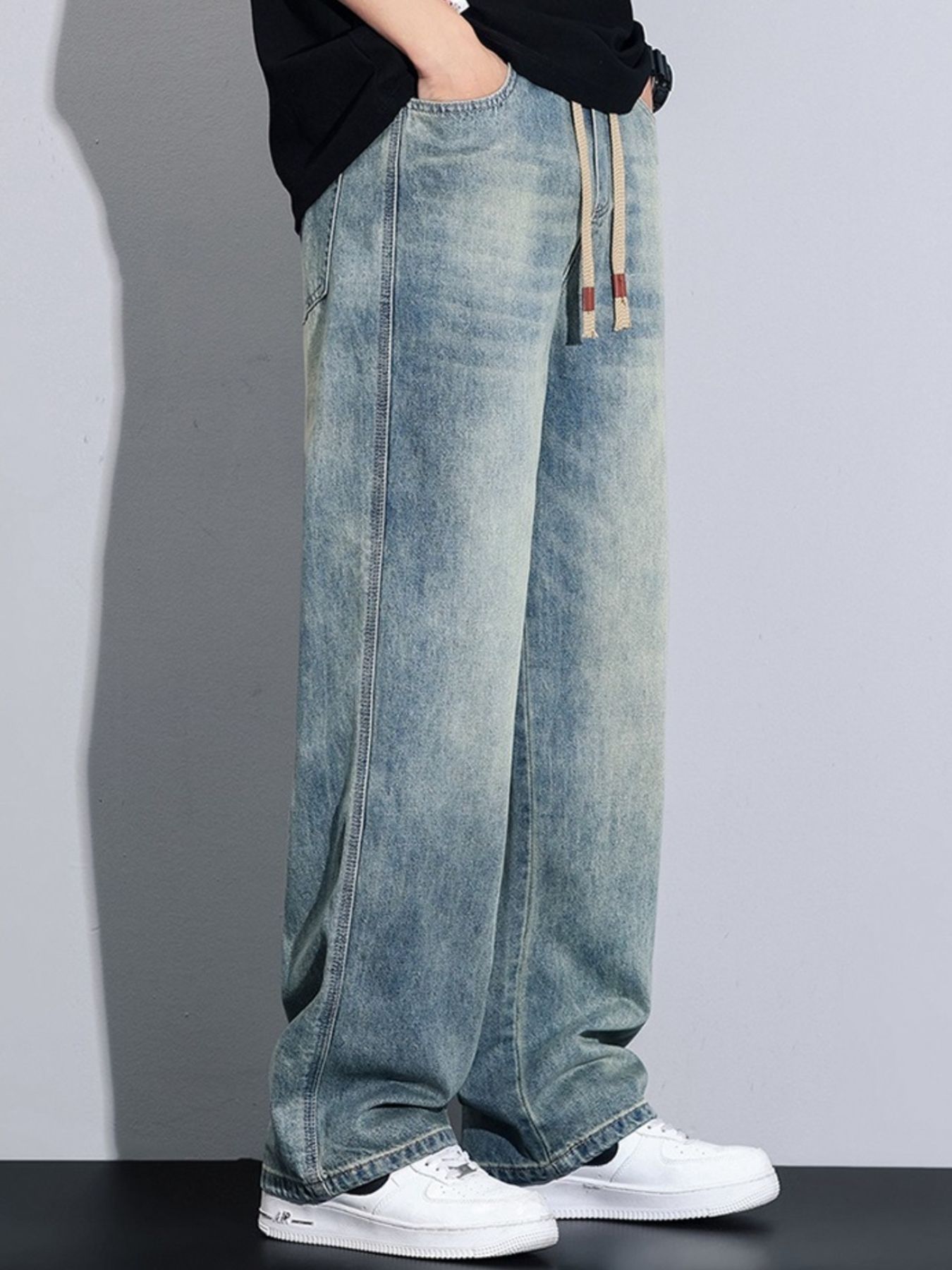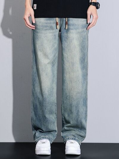 Men's Full Size Drawstring Wide Leg Jeans Plus Size