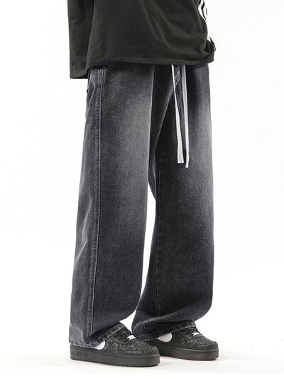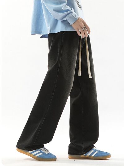 Men's Full Size Drawstring Wide Leg Jeans Plus Size