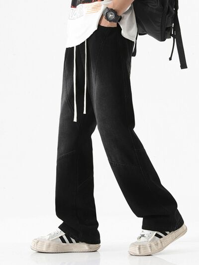 Men's Full Size Drawstring Wide Leg Jeans Plus Size