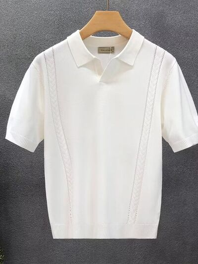 Men's Full Size Eyelet Detail Short Sleeve Polo Plus Size