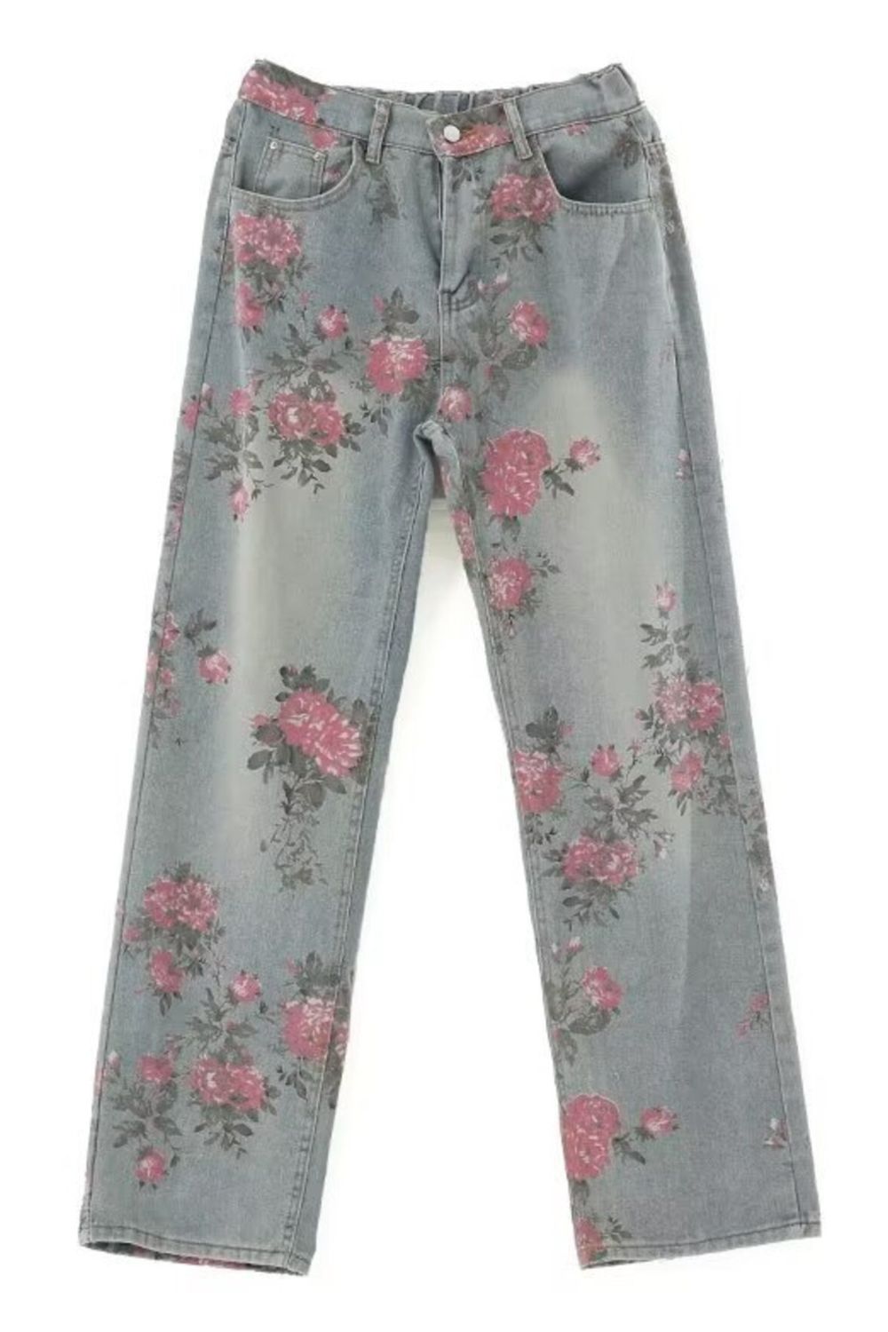 Men's Full Size Floral Print Wide Leg Jeans Plus Size