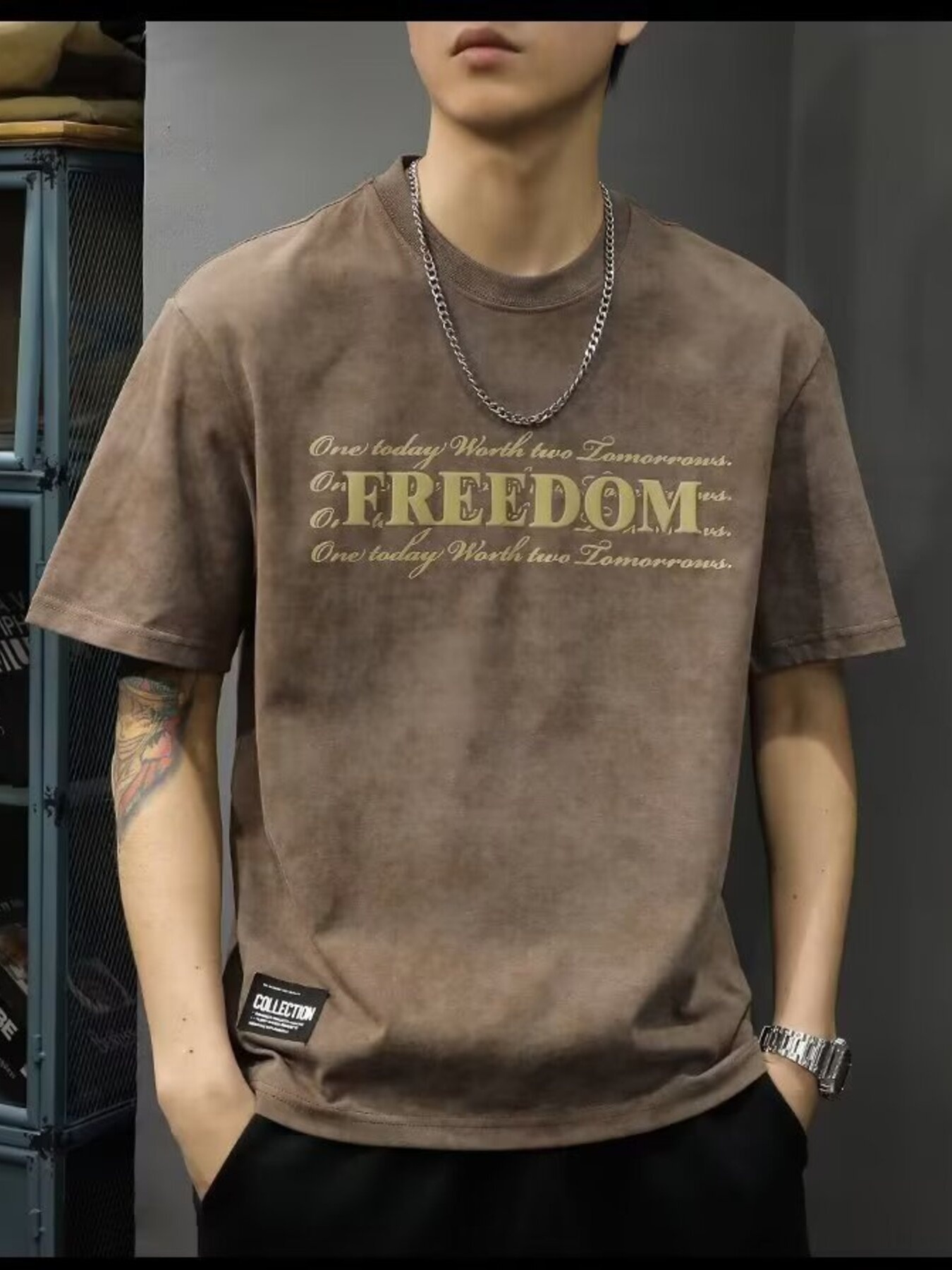 Men's Full Size Freedom Vintage Round Neck T-Shirt Plus Size