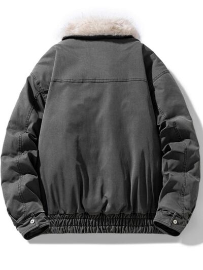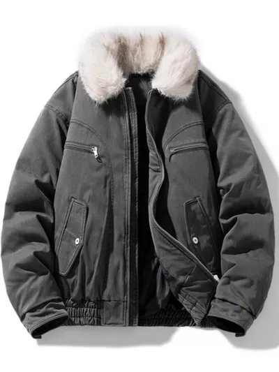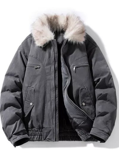 Men's Full Size Fur Collar Zip Up Bomber Jacket Plus Size