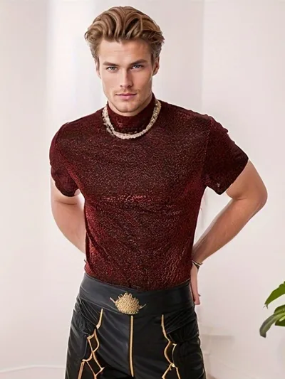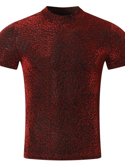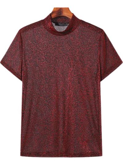 Men's Full Size Glitter Mock Neck Short Sleeve Top Plus Size