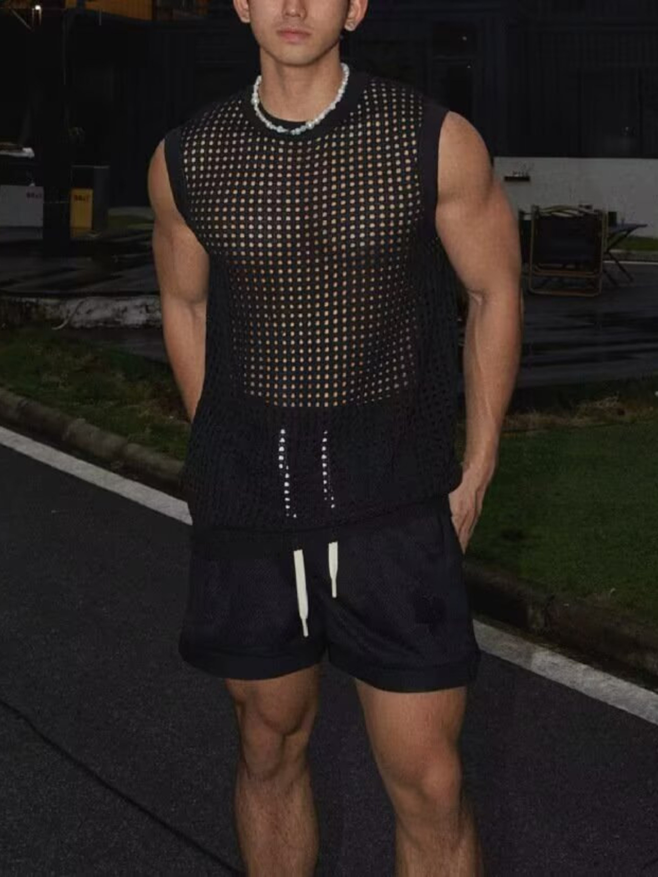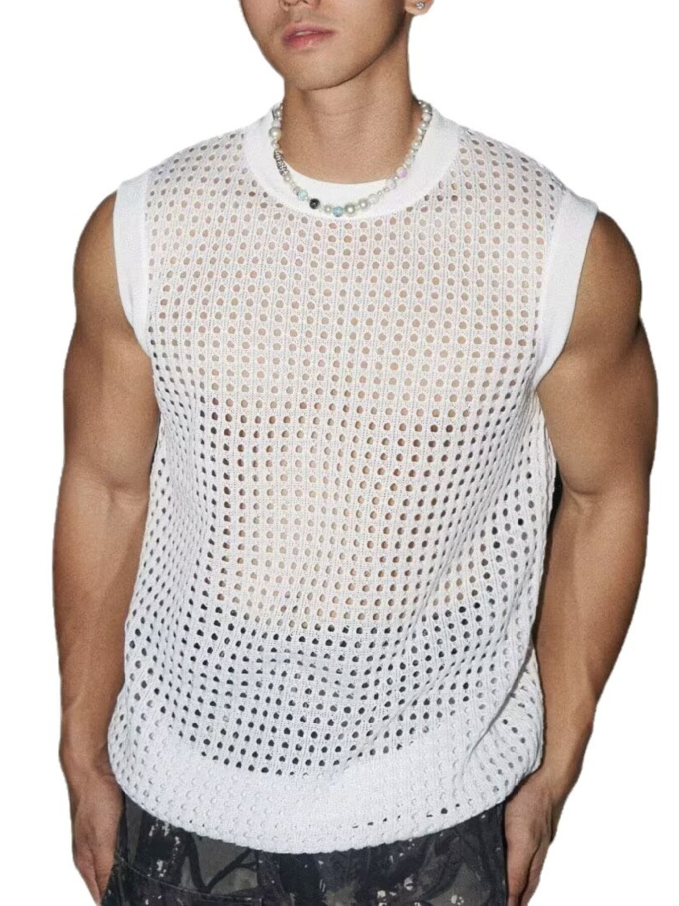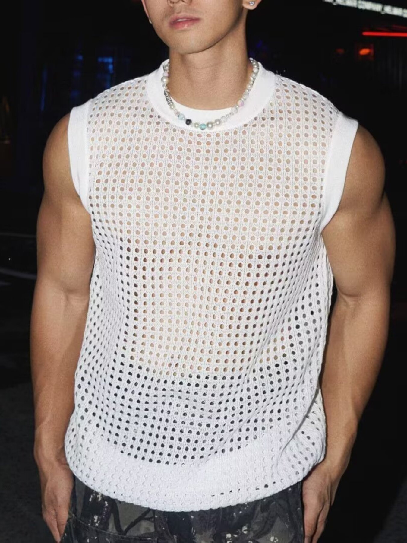 Men's Full Size Hollow Out Round Neck Tank Plus Size