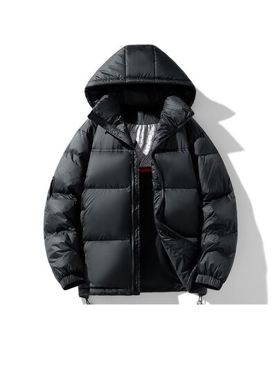 Men's Full Size Hooded Puffer Jacket with Drawstring Hem Plus Size