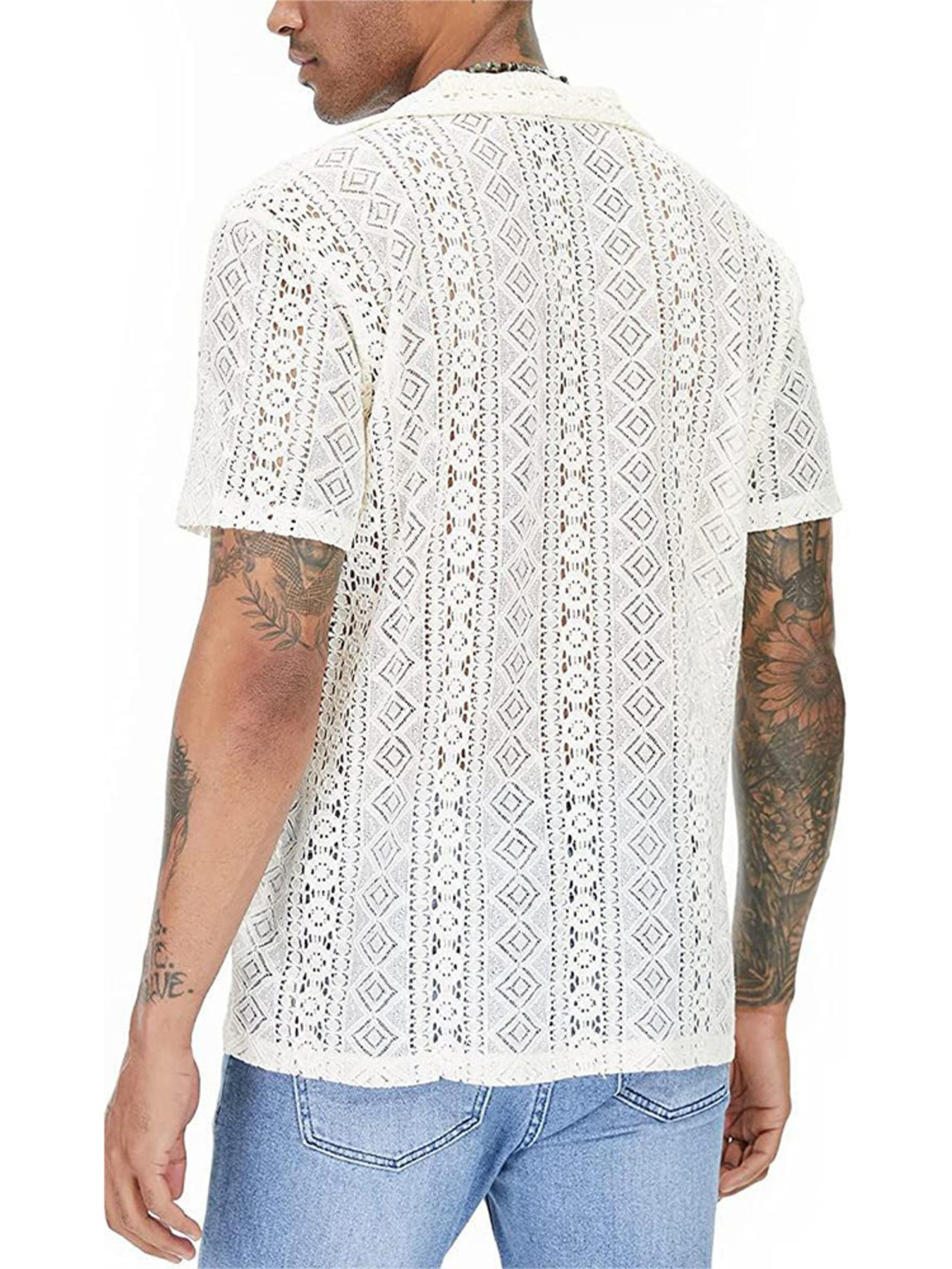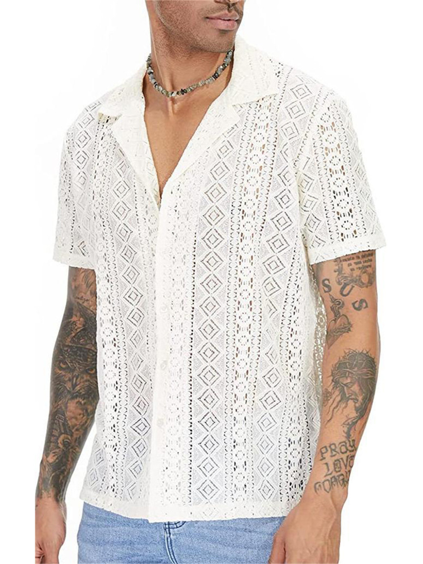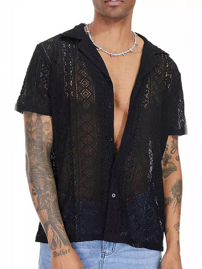 Men's Full Size Lace Button Up Short Sleeve Shirt Plus Size