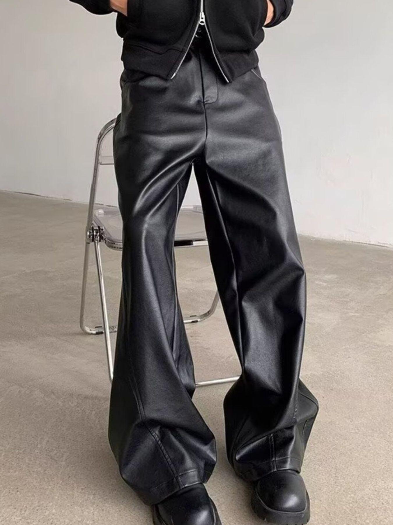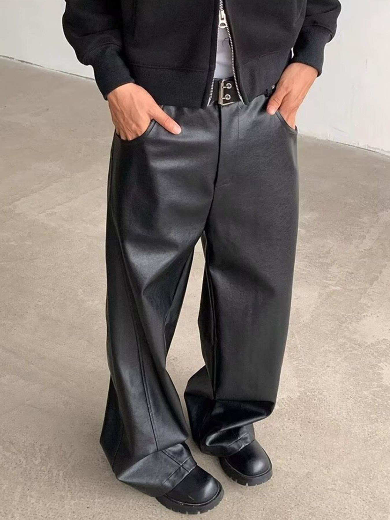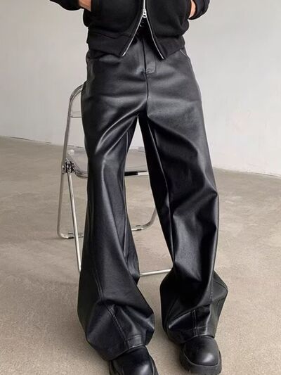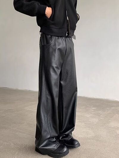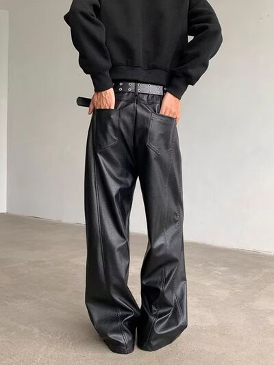 Men's Full Size Leather Wide-Leg Pants Plus Size