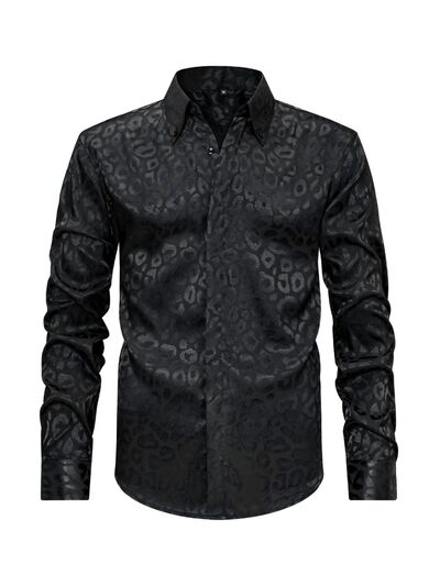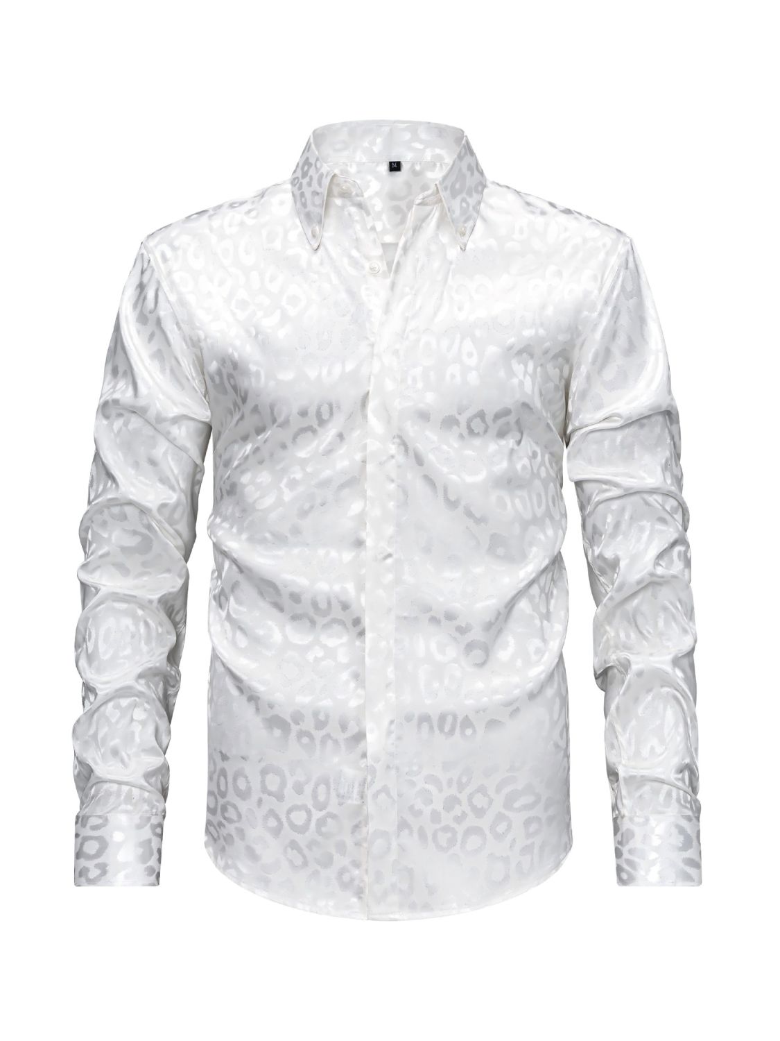 Men's Full Size Leopard Button Down Satin Shirt Plus Size