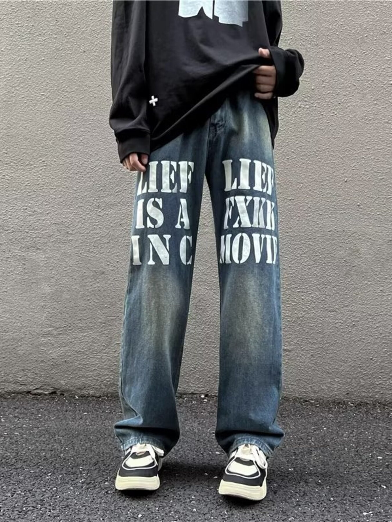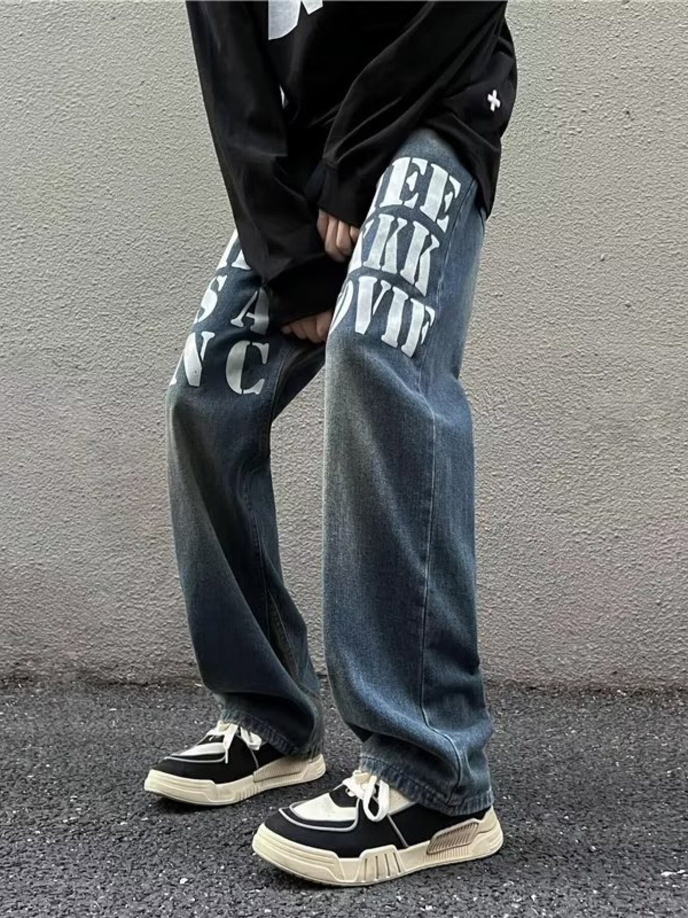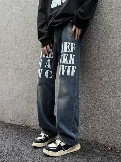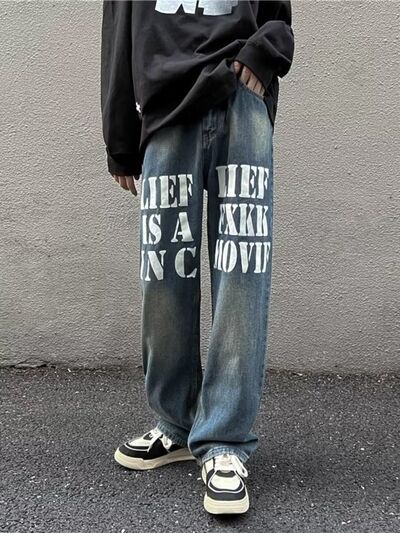 Men's Full Size Letter Graphic Wide Leg Jeans Plus Size