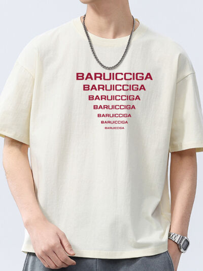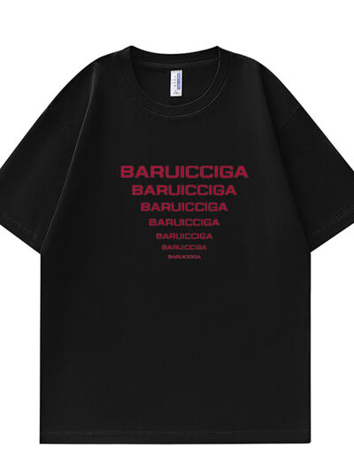 Men's Full Size Letter Round Neck Short Sleeve T-Shirt Plus Size