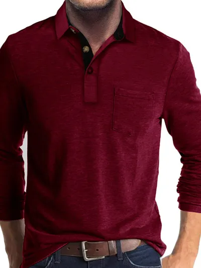 Men's Full Size Long Sleeve Pocket Polo Shirt Plus Size