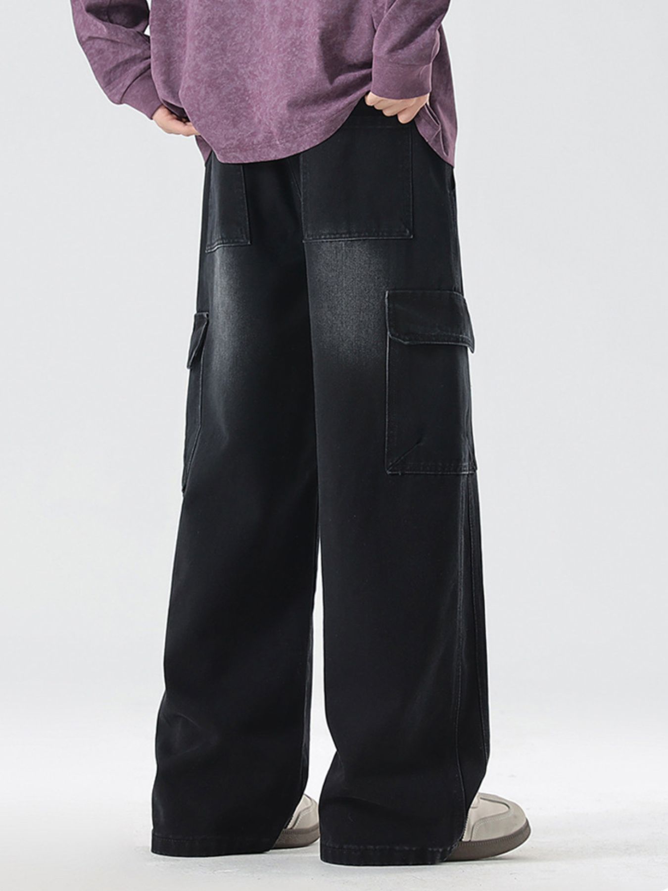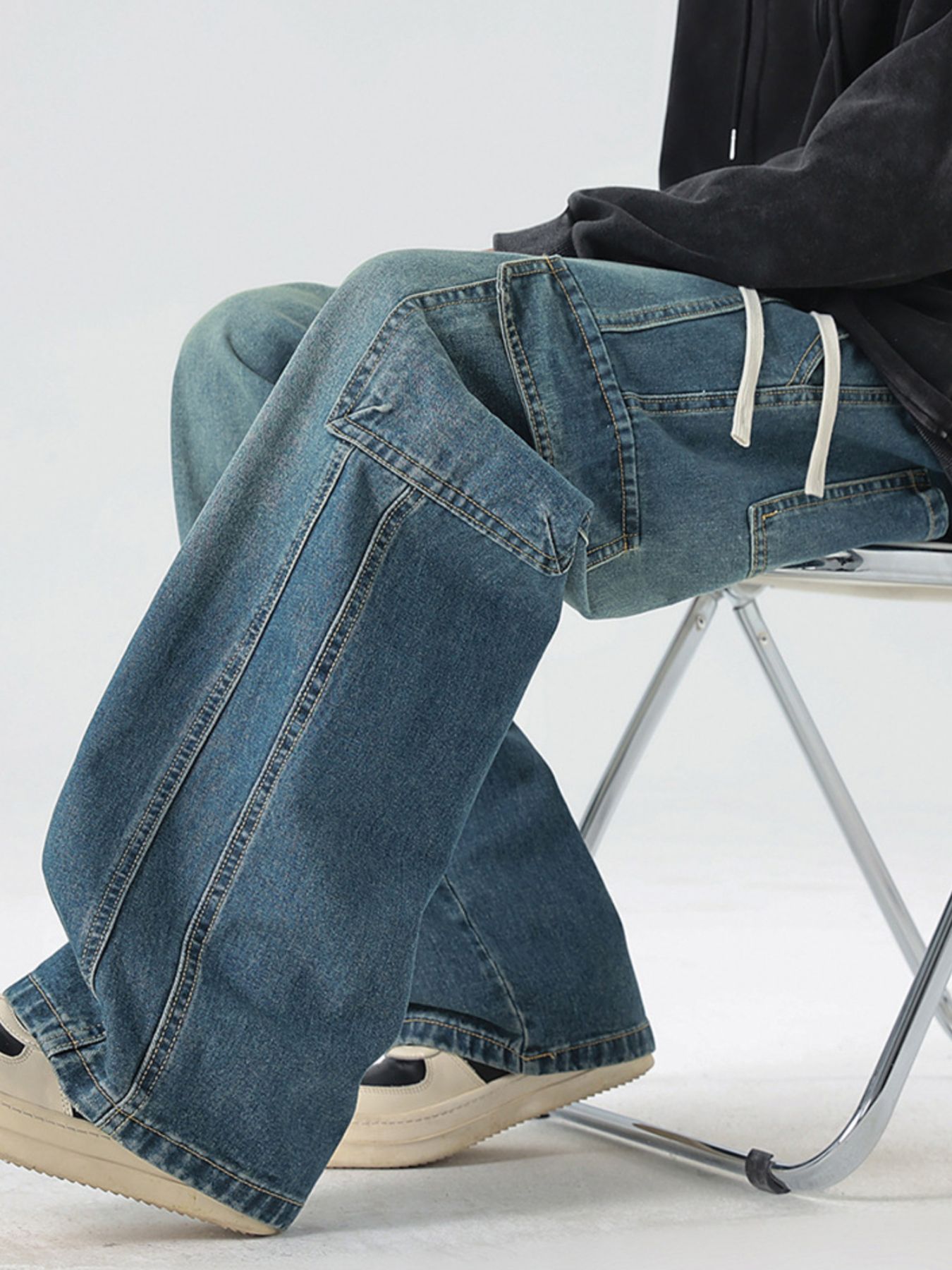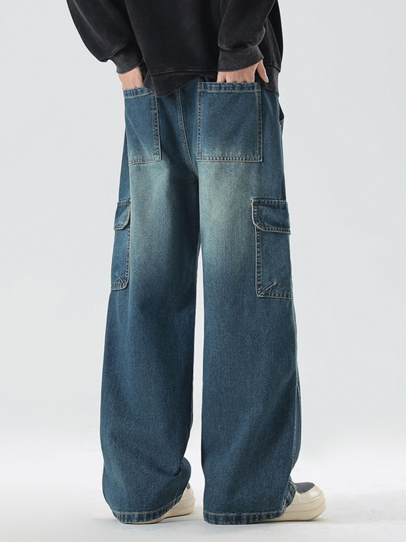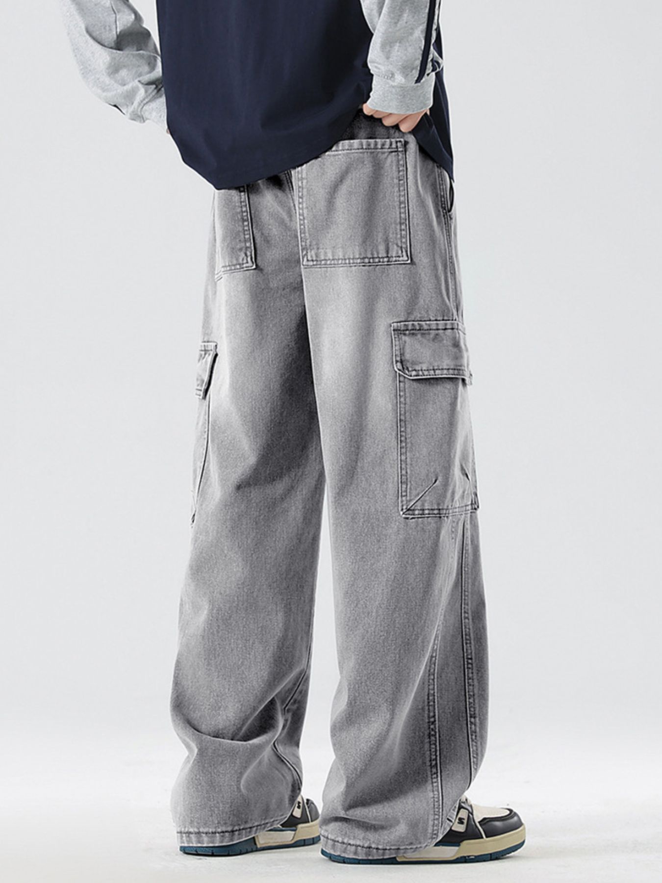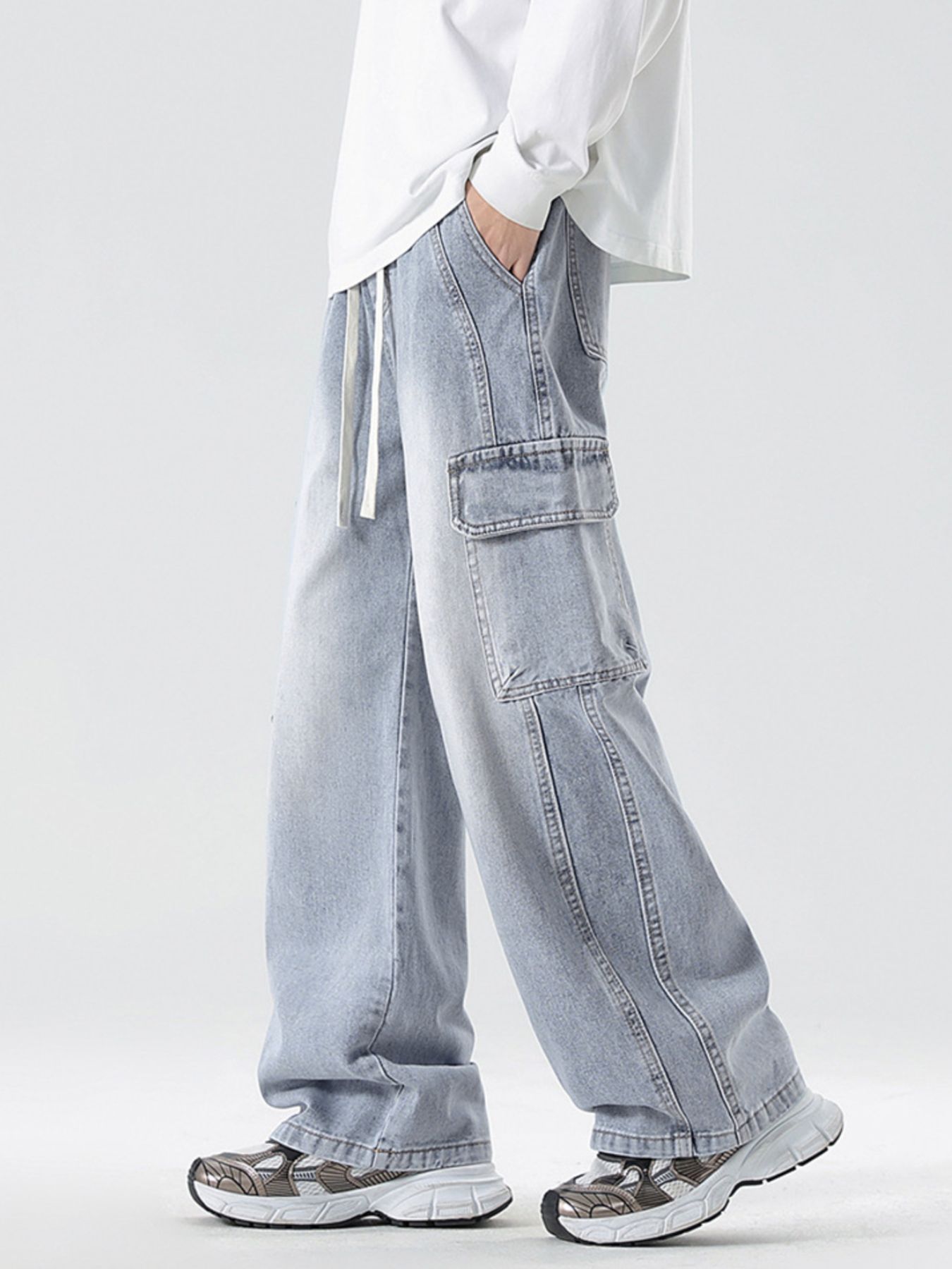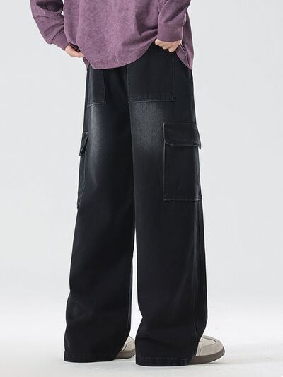 Men's Full Size Loose Fit Cargo Jeans with Drawstring Plus Size