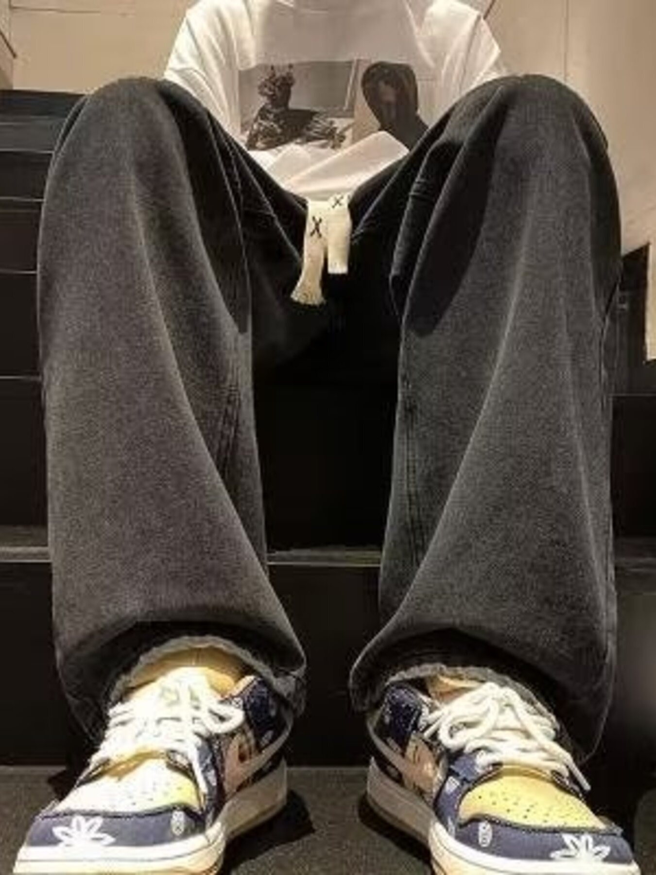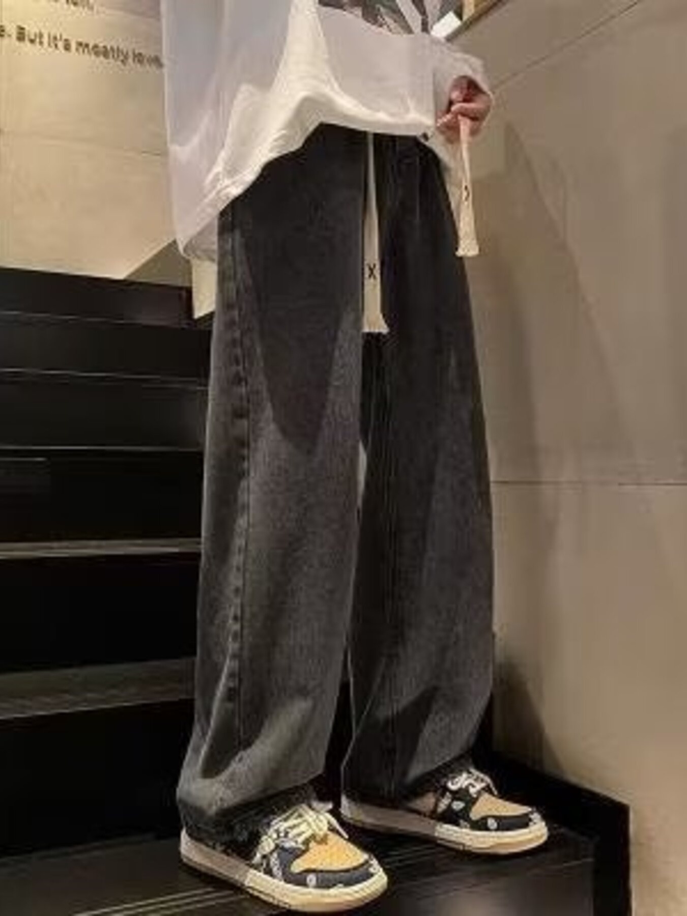 Men's Full Size Loose Fit Drawstring Wide Leg Jeans Plus Size