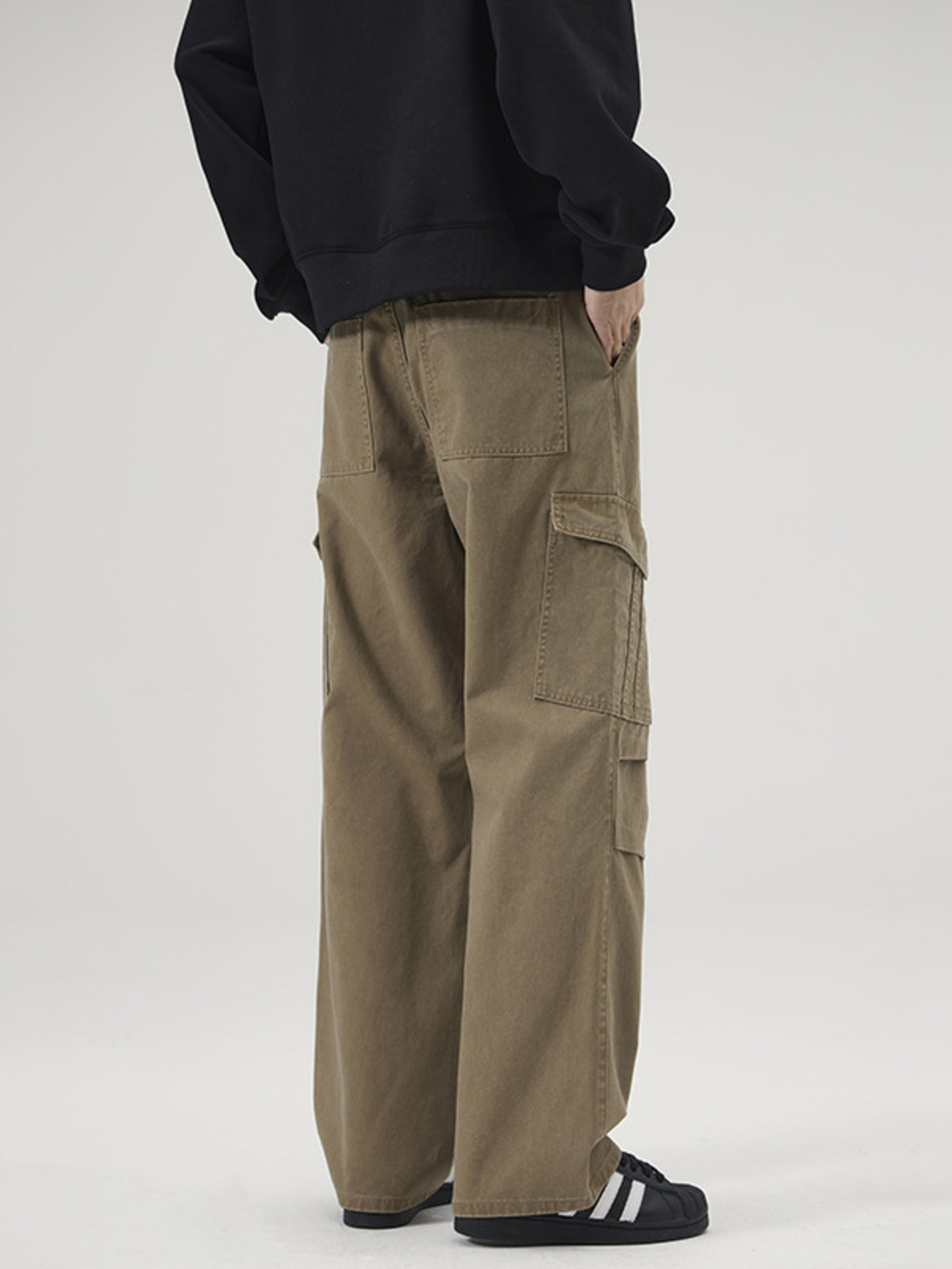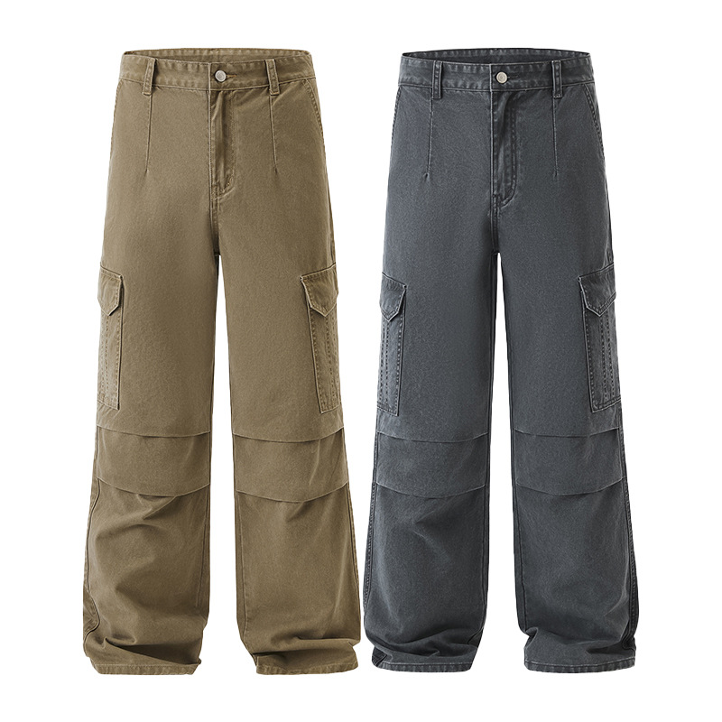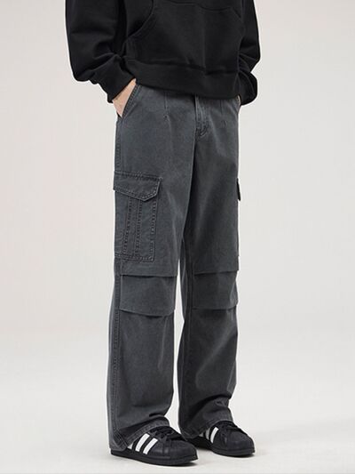 Men's Full Size Multi-Pocket Cargo Pants with Ruched Detail Plus Size