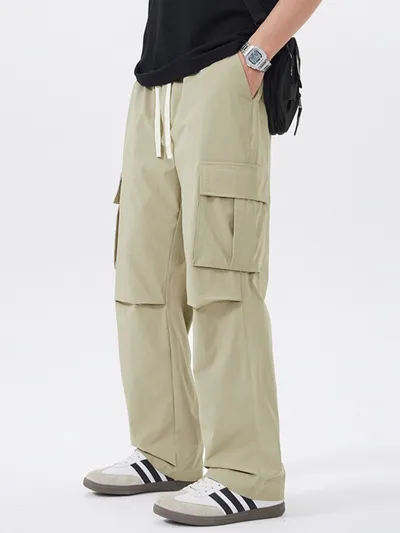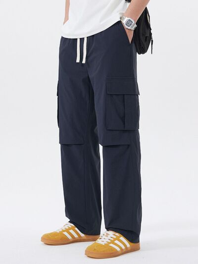 Men's Full Size Multi-Pocket Tactical Cargo Pants with Drawstring Waist Plus Size