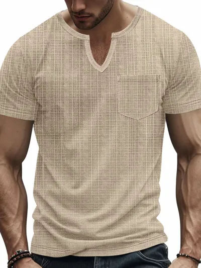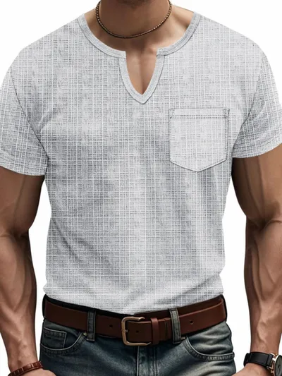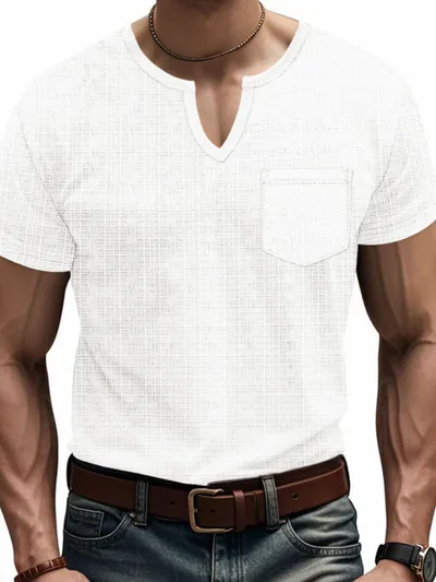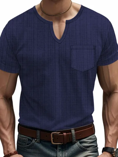 Men's Full Size Notched Short Sleeve T-Shirt Plus Size