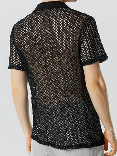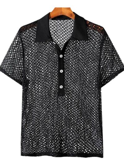Men's Full Size Openwork Short Sleeve Polo Plus Size