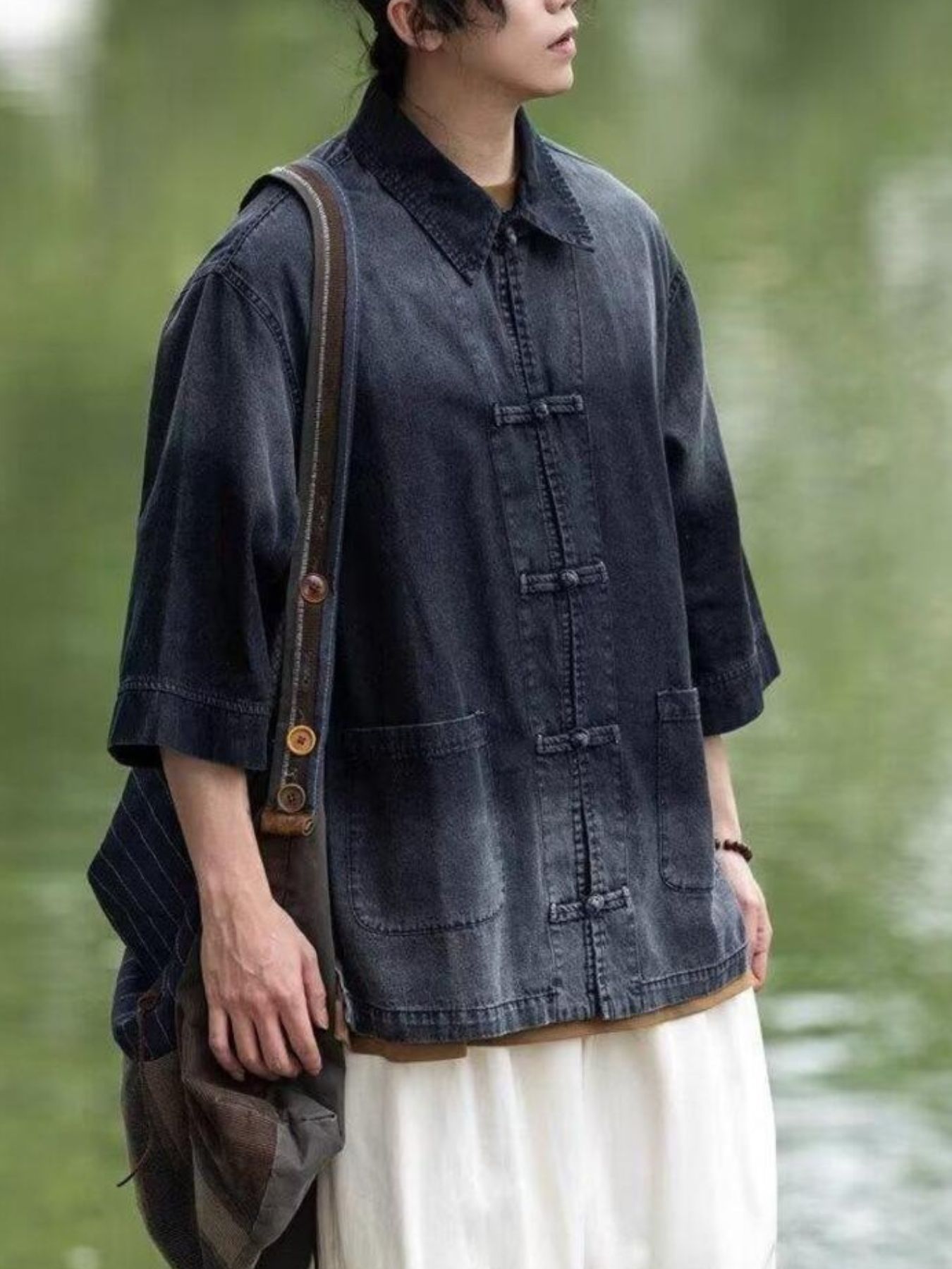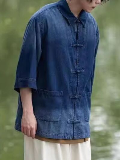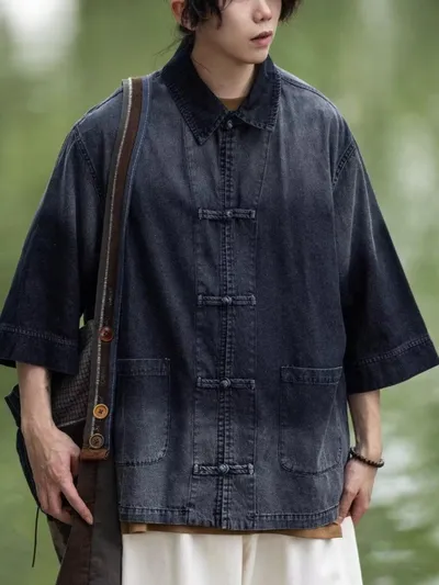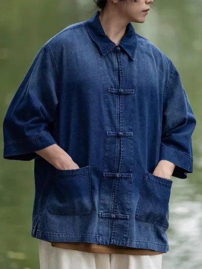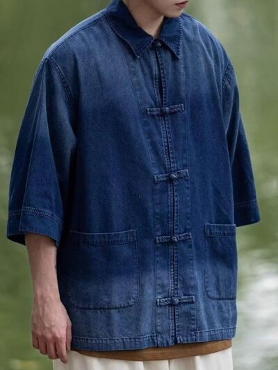 Men's Full Size Oversized 3/4 Sleeve Denim Shirt Plus Size