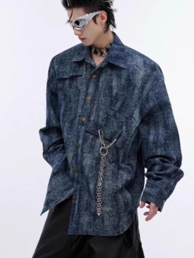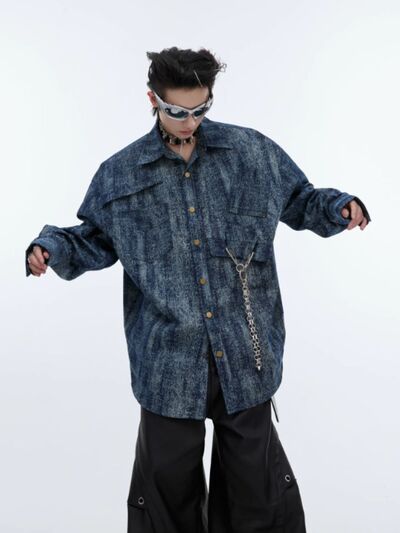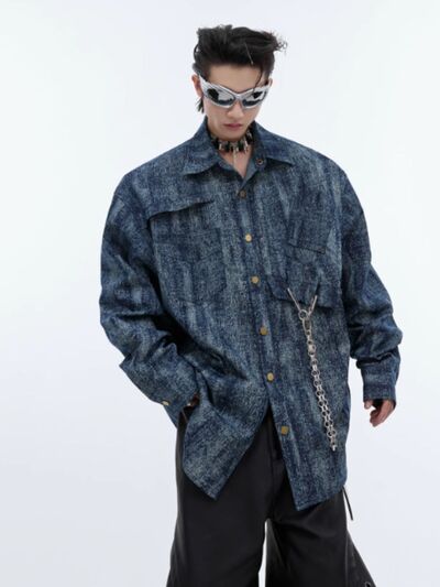 Men's Full Size Oversized Button Up Denim Shirt Plus Size