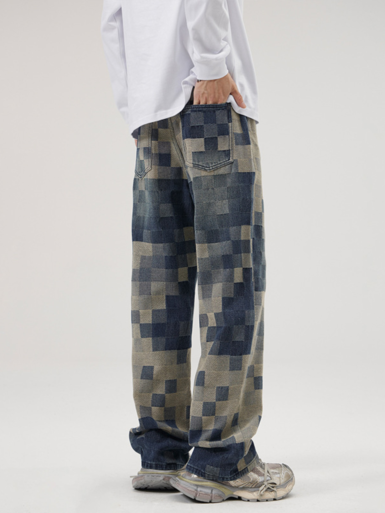 Men's Full Size Pixelated Print Loose Fit Jeans Plus Size