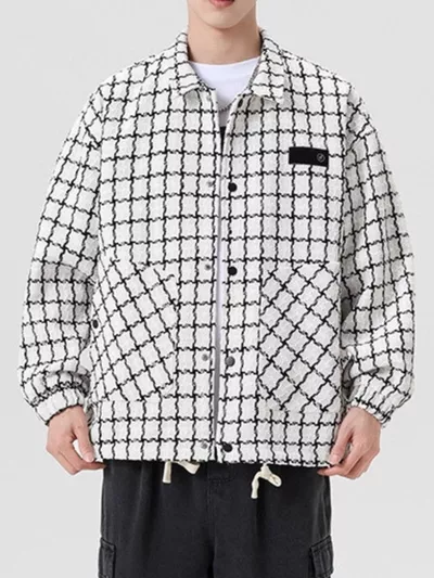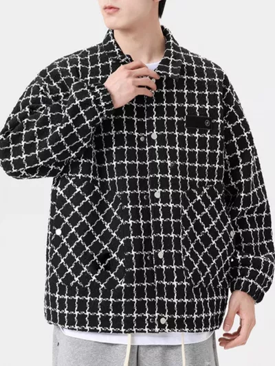 Men's Full Size Plaid Button Up Casual Jacket Plus Size