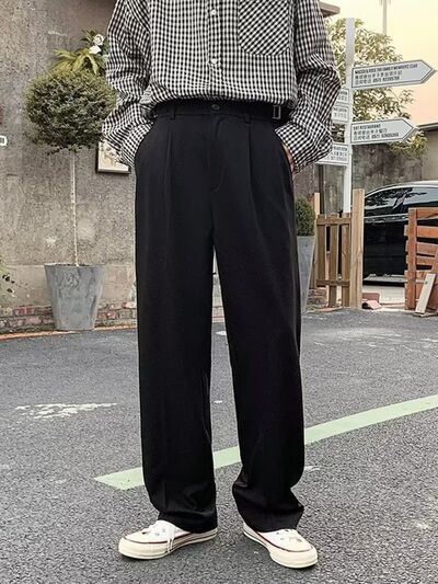 Men's Full Size Pleated Wide Leg Pants Plus Size