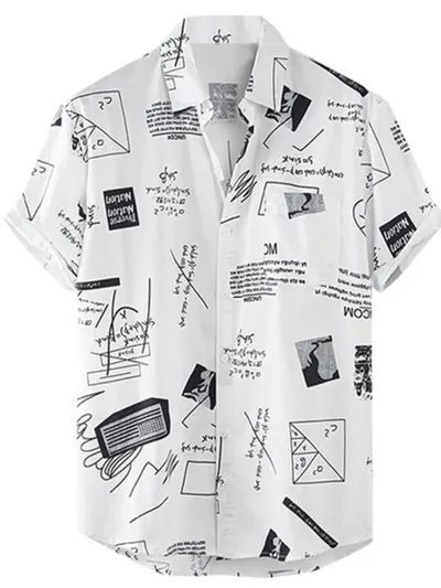 Men's Full Size Printed Button Up Short Sleeve Shirt Plus Size