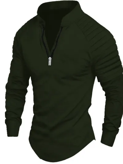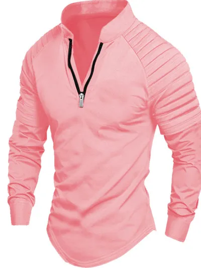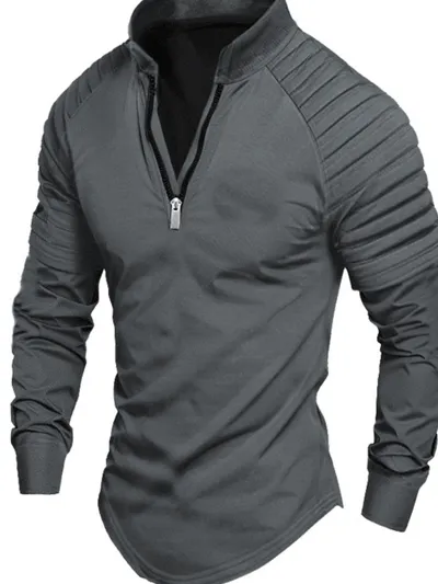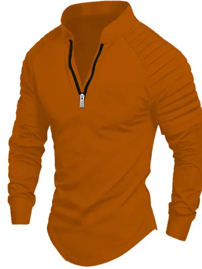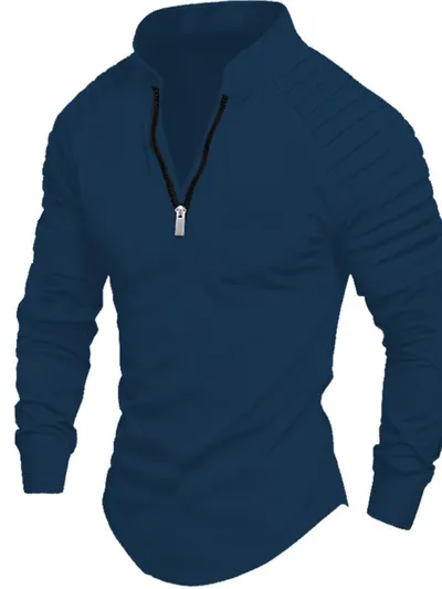 Men's Full Size Quarter Zip Long Sleeve Polo Plus SIze