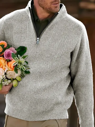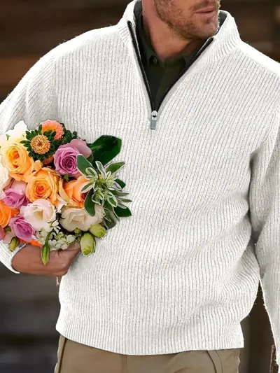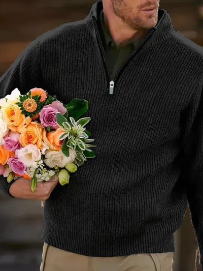 Men's Full Size Quarter Zip Long Sleeve Polo Plus Size