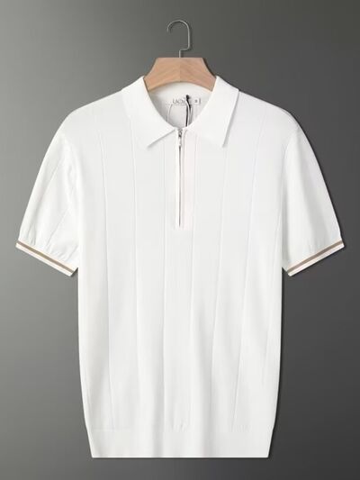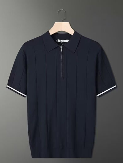 Men's Full Size Quarter Zip Short Sleeve Polo Plus Size
