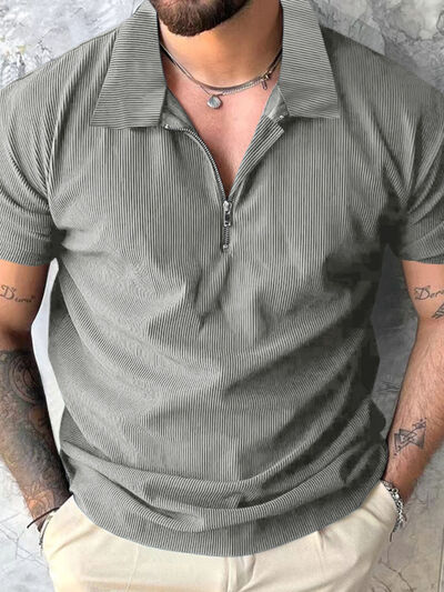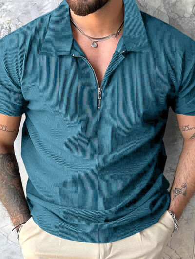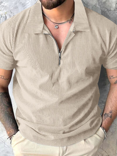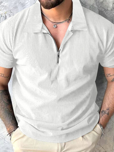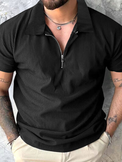 Men's Full Size Quarter Zip Short Sleeve Polo Plus Size