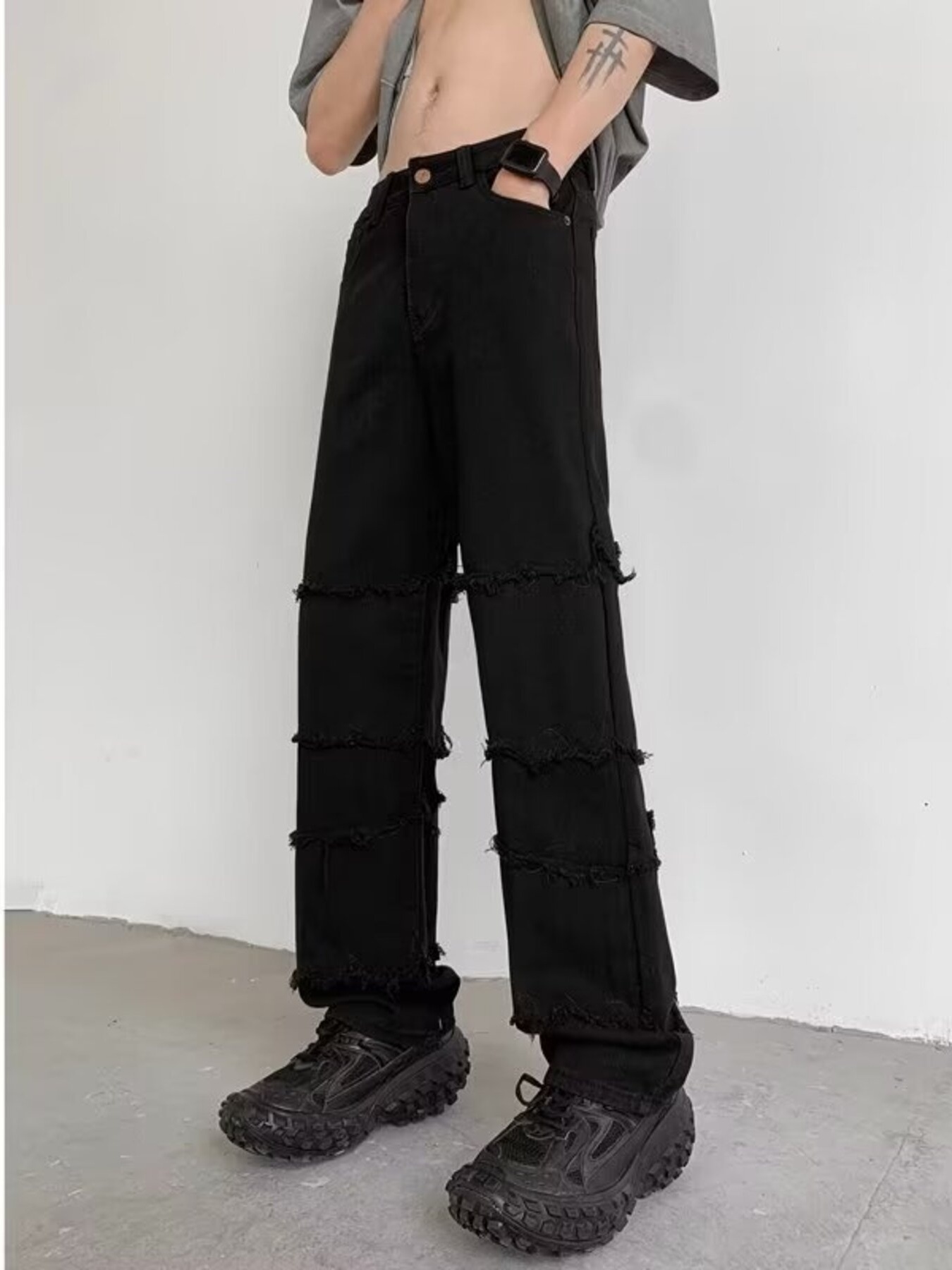 Men's Full Size Raw Hem Jeans Plus Size