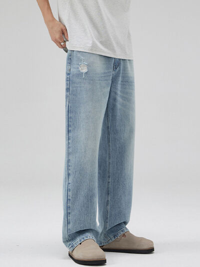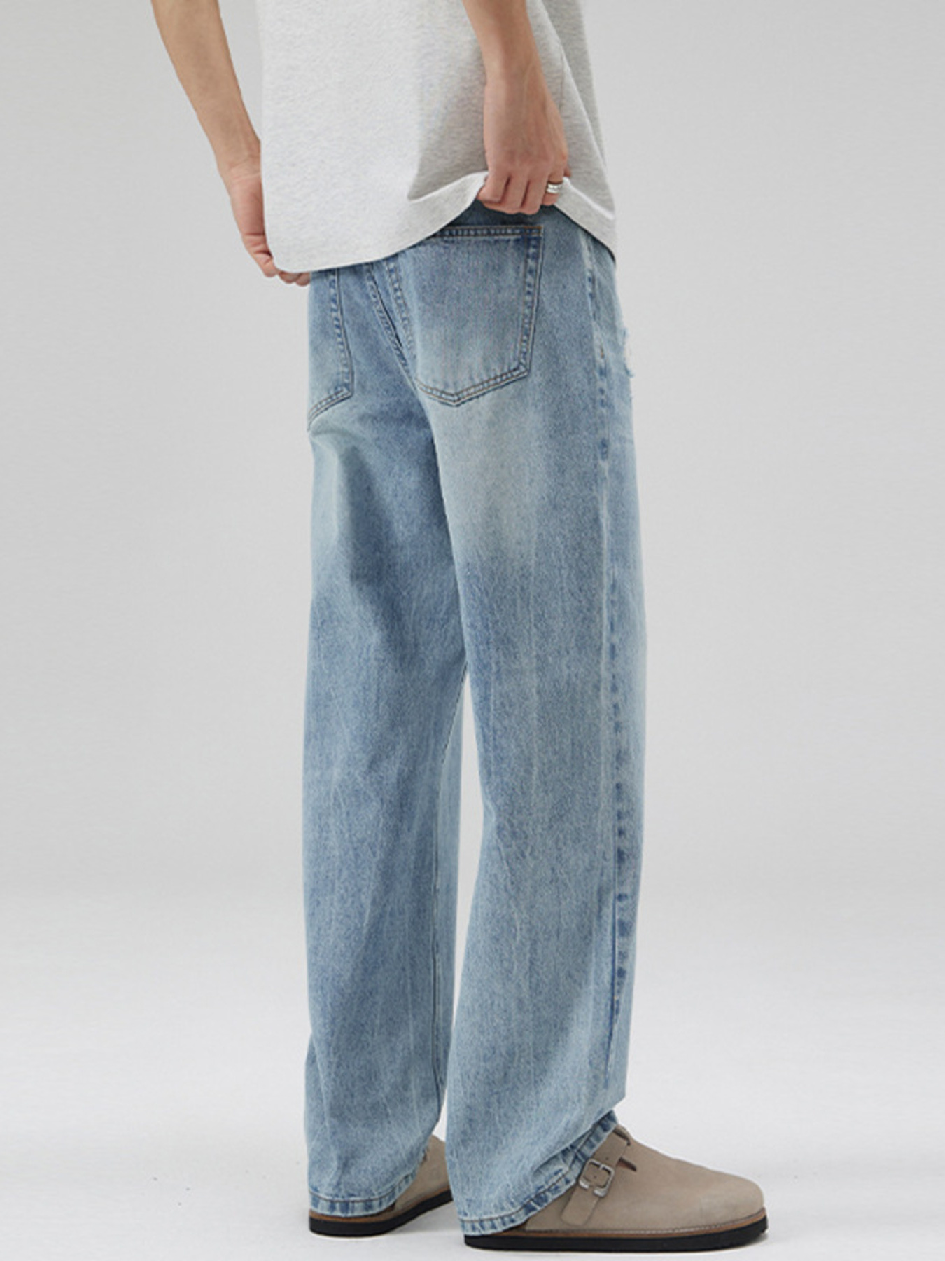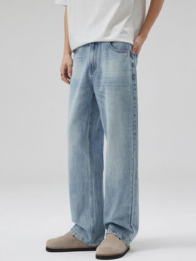 Men's Full Size Relaxed Fit Washed Wide Leg Jeans Plus Size