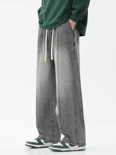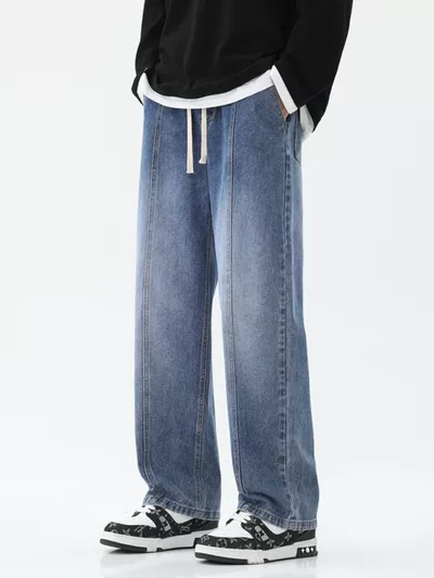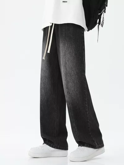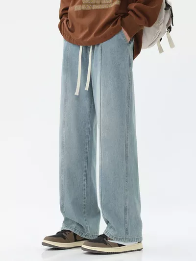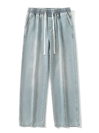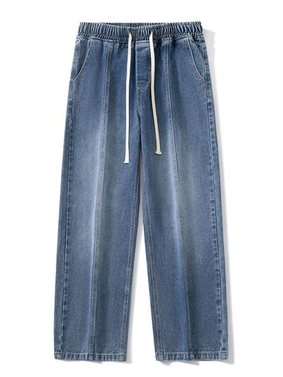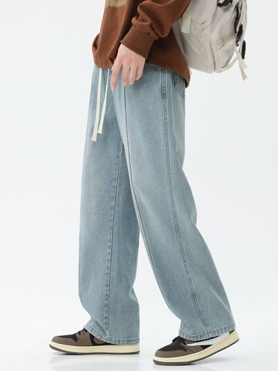 Men's Full Size Relaxed Fit Wide Leg Drawstring Jeans Plus Size