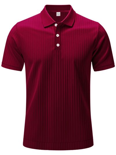Men's Full Size Ribbed Short Sleeve Polo Plus Size