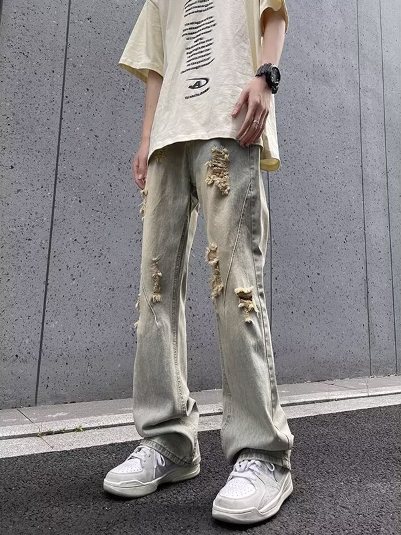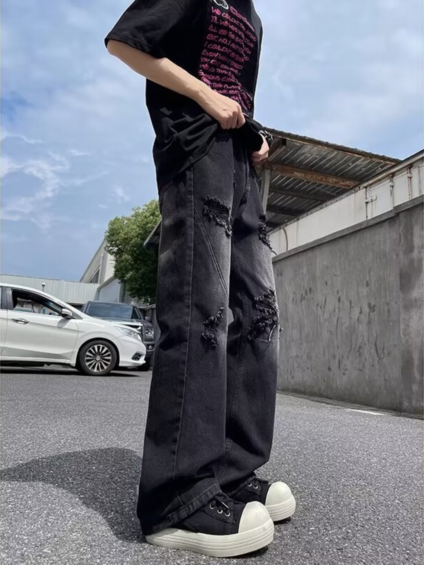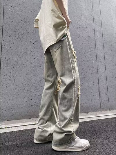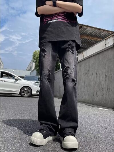 Men's Full Size Ripped Distressed Straight Leg Jeans Plus Size