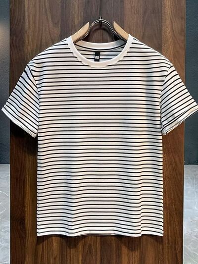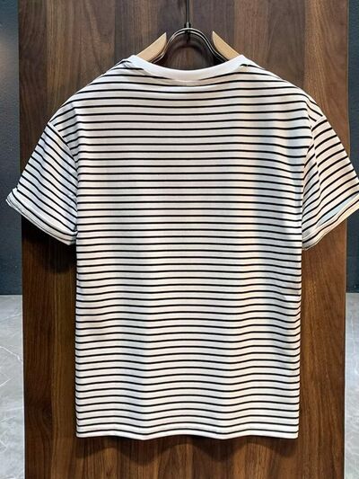 Men's Full Size Round Neck Contrast Striped T-Shirt Plus Size