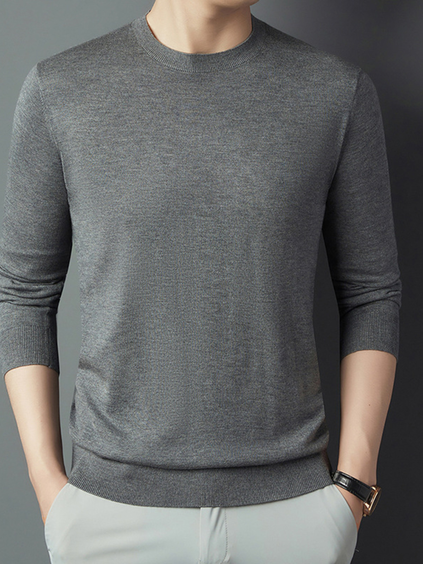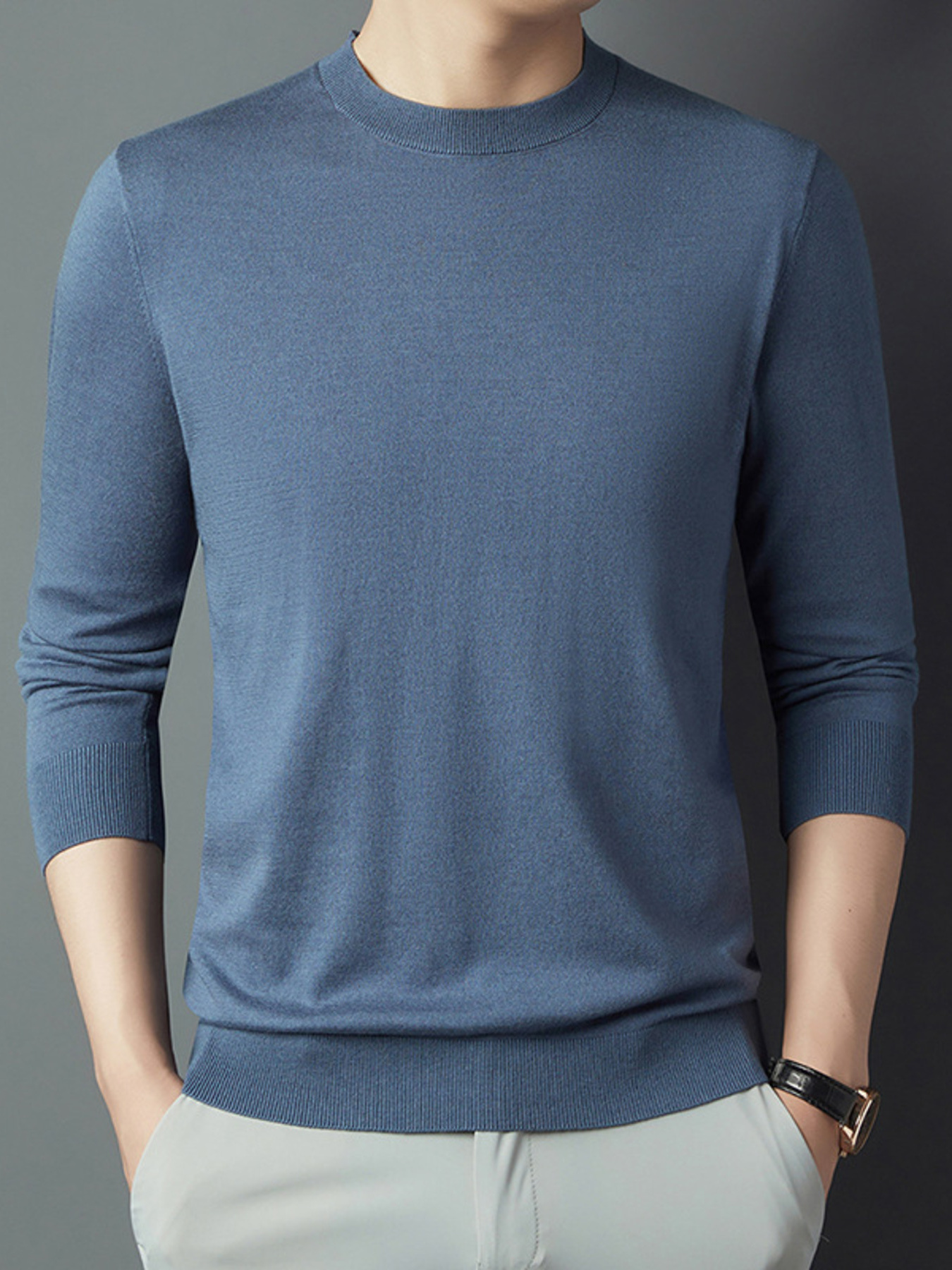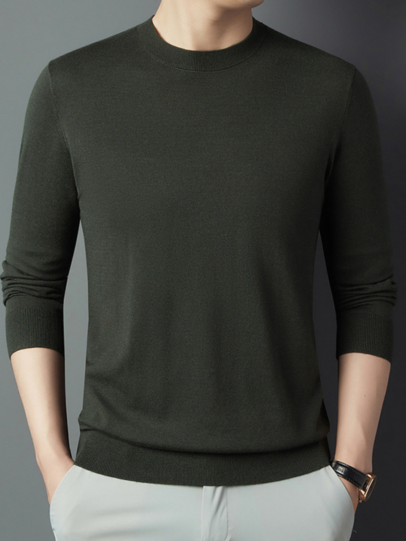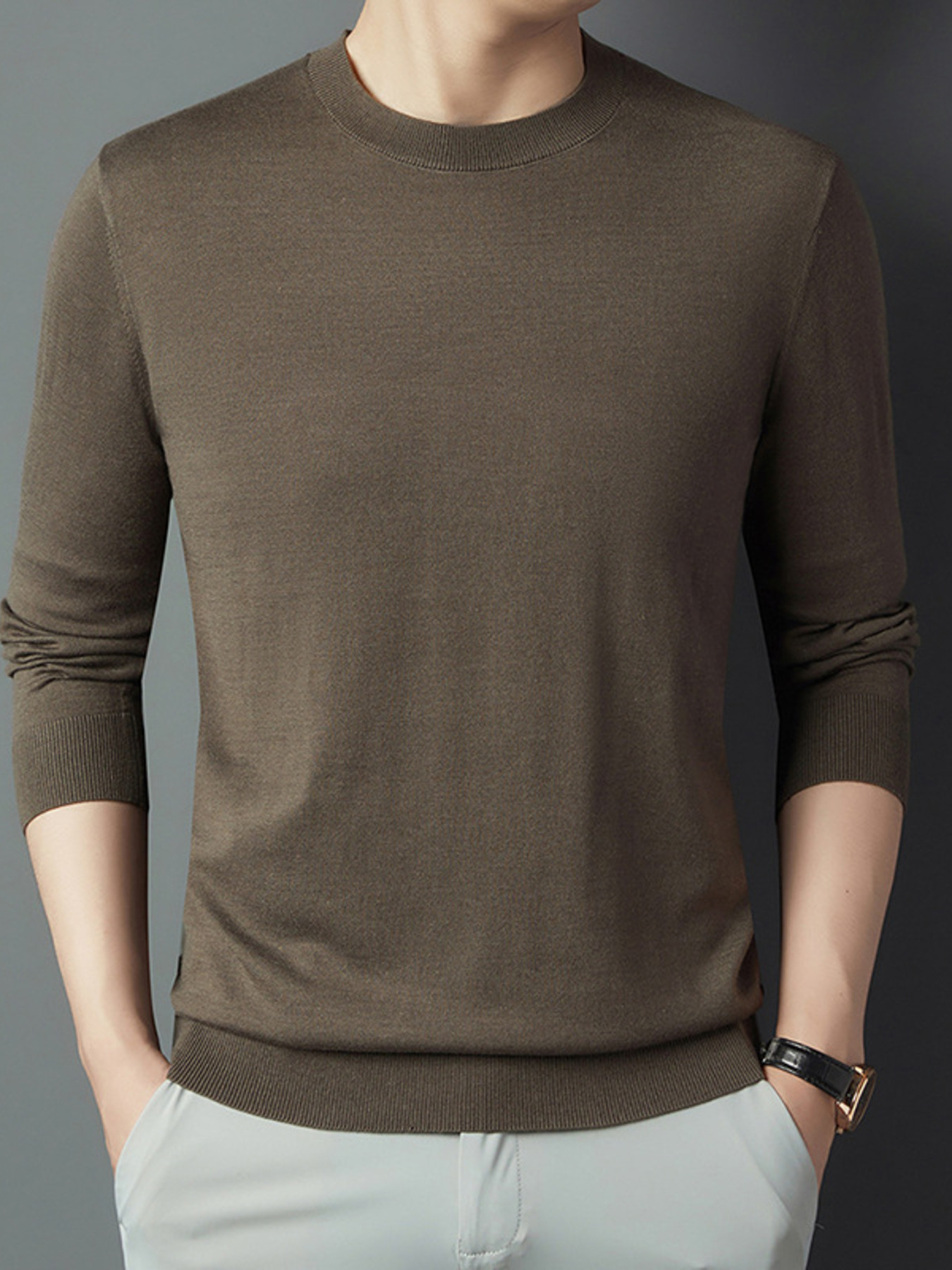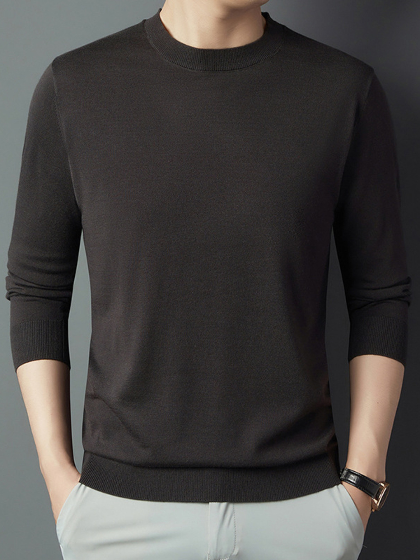 Men's Full Size Round Neck Long Sleeve Knit Top Plus Size