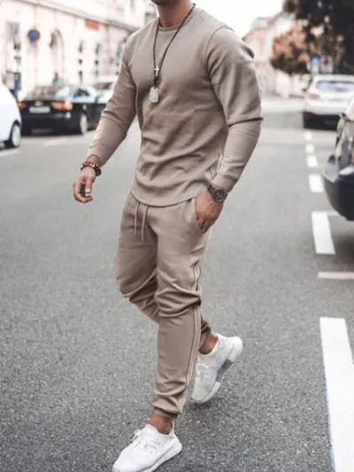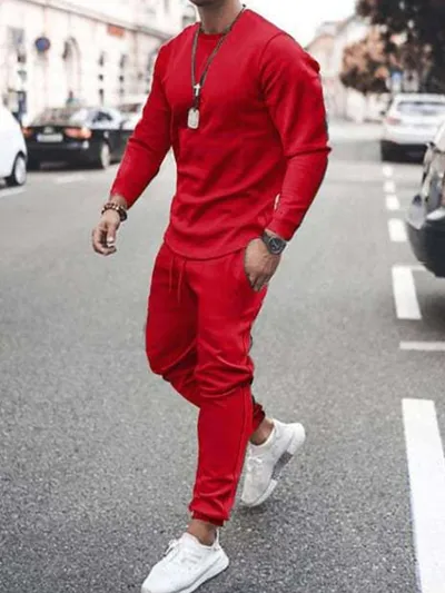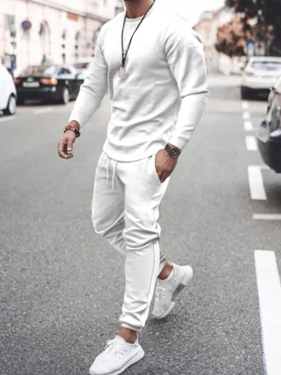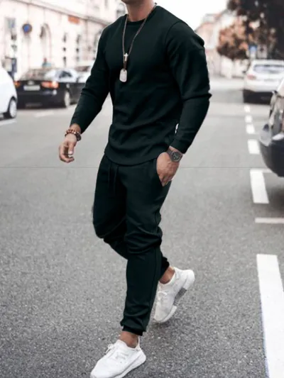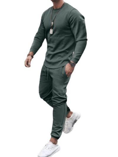 Men's Full Size Round Neck Long Sleeve Top and Pants Set Plus Size